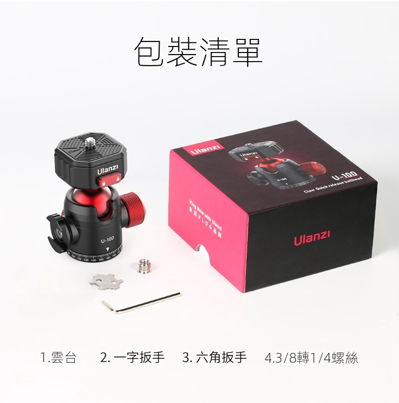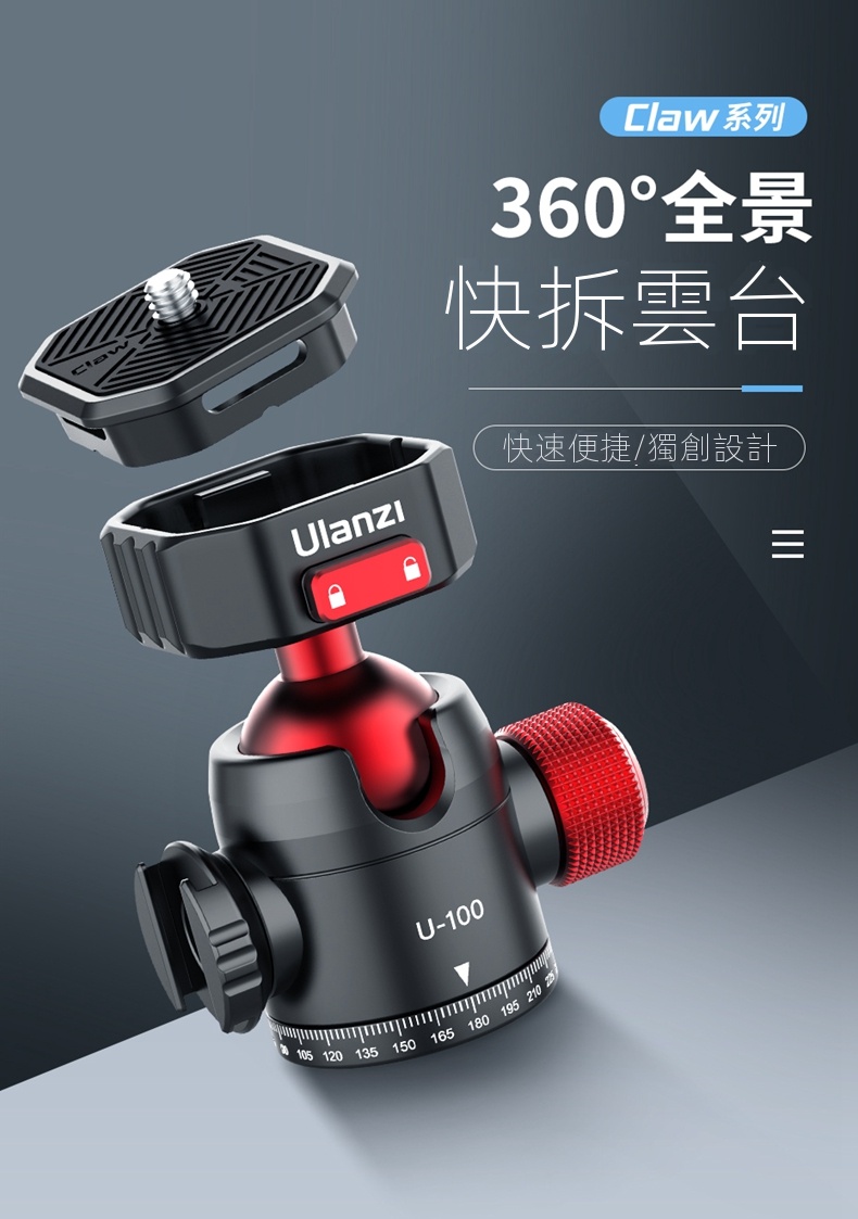 Ulanzi 銳爪U100 全景雲台 - 黑色 | 360°全景旋轉 | 快速拆冷靴設計 | 香港行貨