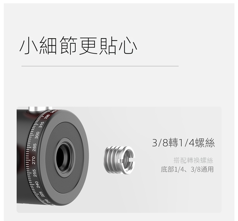• 提供3/8轉1/4螺絲轉接頭,兼容不同接口需求