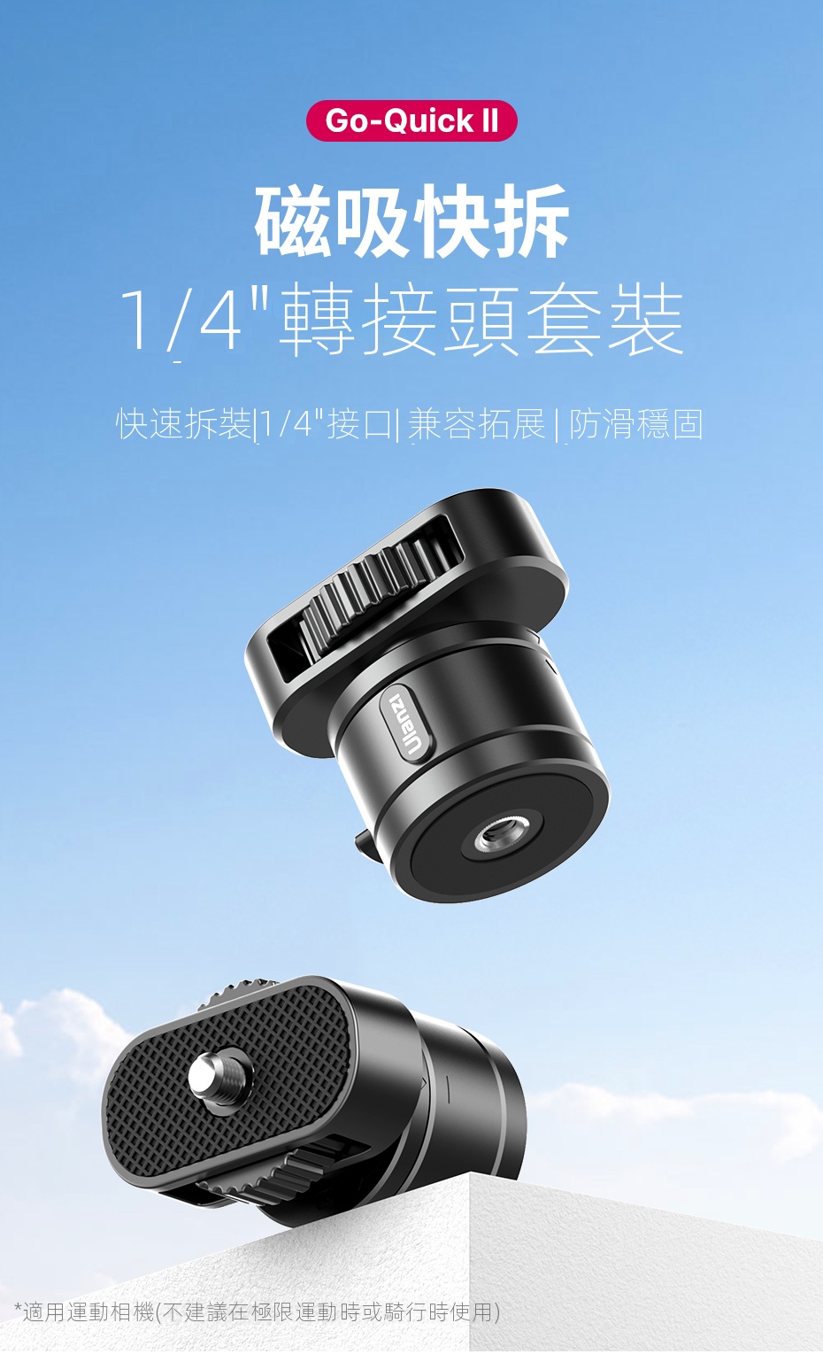 Ulanzi GO-QuickII 運動相機1/4螺絲孔轉接器 | 強磁吸附 | 廣泛相容 | 香港行貨