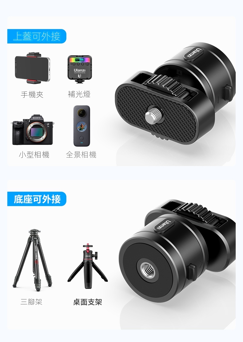 • 適用於手機、補光燈、小型相機、全景相機等多種設備