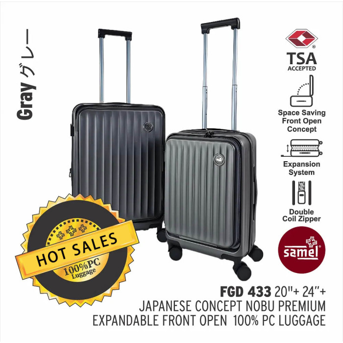 使用 Samel 最新款的無堅不摧聚碳酸酯行李箱,讓您旅行更有信心。FGD 433 型號講求耐用性、時尚感與便利性,採用 100% 高級聚碳酸酯材質製成,確保具備卓越的抗衝擊性與持久的使用性能。其可擴展的前開式設計、內建 TSA 鎖與防盜拉鍊,不僅能保障您隨身物品的安全,還提供整齊有序的收納空間。輕巧的體積、符合人體工學的把手以及 360° 萬向輪,讓移動毫不費力,是您完美的旅行良伴。