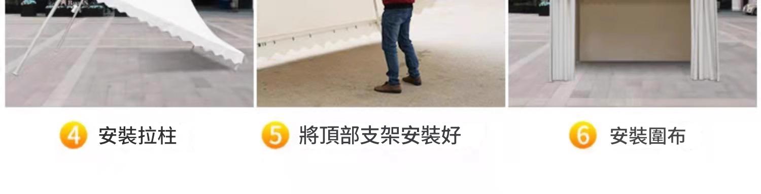 戶外尖頂活動篷房提供充足的遮陽和活動空間,滿足各類活動需求。堅固耐用的全鋁合金材質,確保篷房的穩定性和長壽命,適合各種戶外天氣條件。優雅的白色外觀,適合婚禮、車展及各類商業活動,增添高端氛圍,又有良好的遮陽效果。它為我們提供舒適的環境,是戶外活動的好選擇。