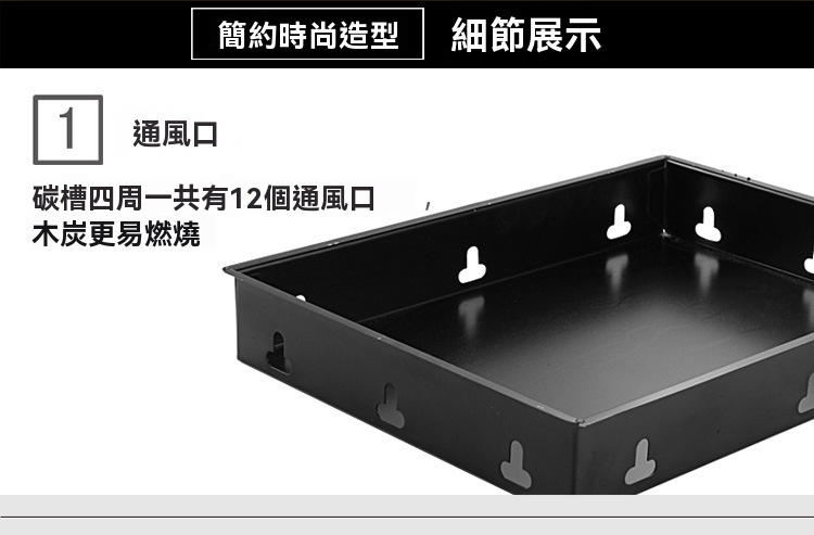 這款DESKTOP BBQ小型抽拉式折疊式烤肉爐,是家庭聚會與戶外野餐的理想選擇。它採用高強度不銹鋼材質打造,耐高溫且抗腐蝕,耐用性極佳。抽拉式炭槽設計獨具匠心,讓添加木炭與清理炭灰變得輕鬆便捷,避免了燙傷風險,大大提升烤製效率。其折疊結構極為巧妙,不用時可輕鬆折疊收納,體積小巧,無論是放入汽車後備箱,還是置於背包中攜帶,都毫無壓力,隨時隨地都能開啟燒烤派對。展開後尺寸適宜,滿足多人用餐需求。兩側設有通風孔,確保空氣流通,輕鬆把控火候,搭配可調節高度的烤網,讓食物受熱更均勻,帶來絕佳的燒烤體驗 。