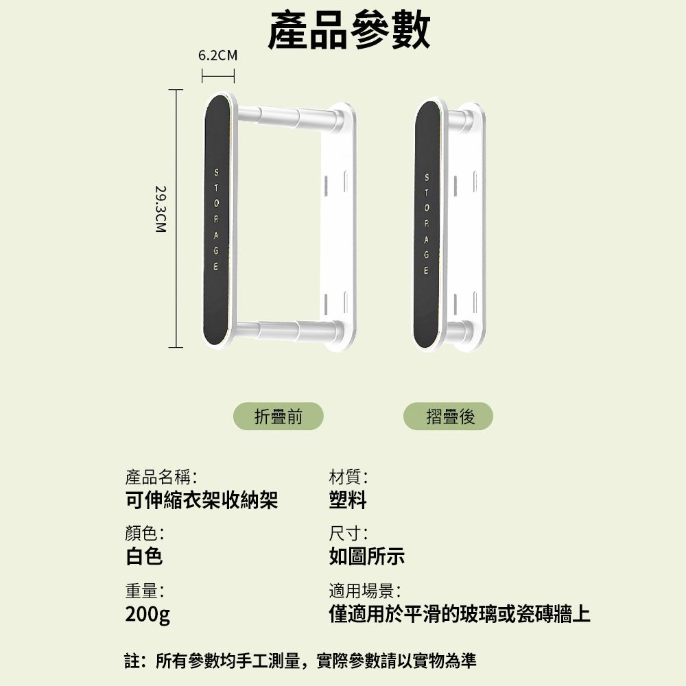 Nidouillet ET027801 免打孔可伸縮衣架收納架 - 白色 | 免釘無痕 | 三檔伸縮 | 香港行貨