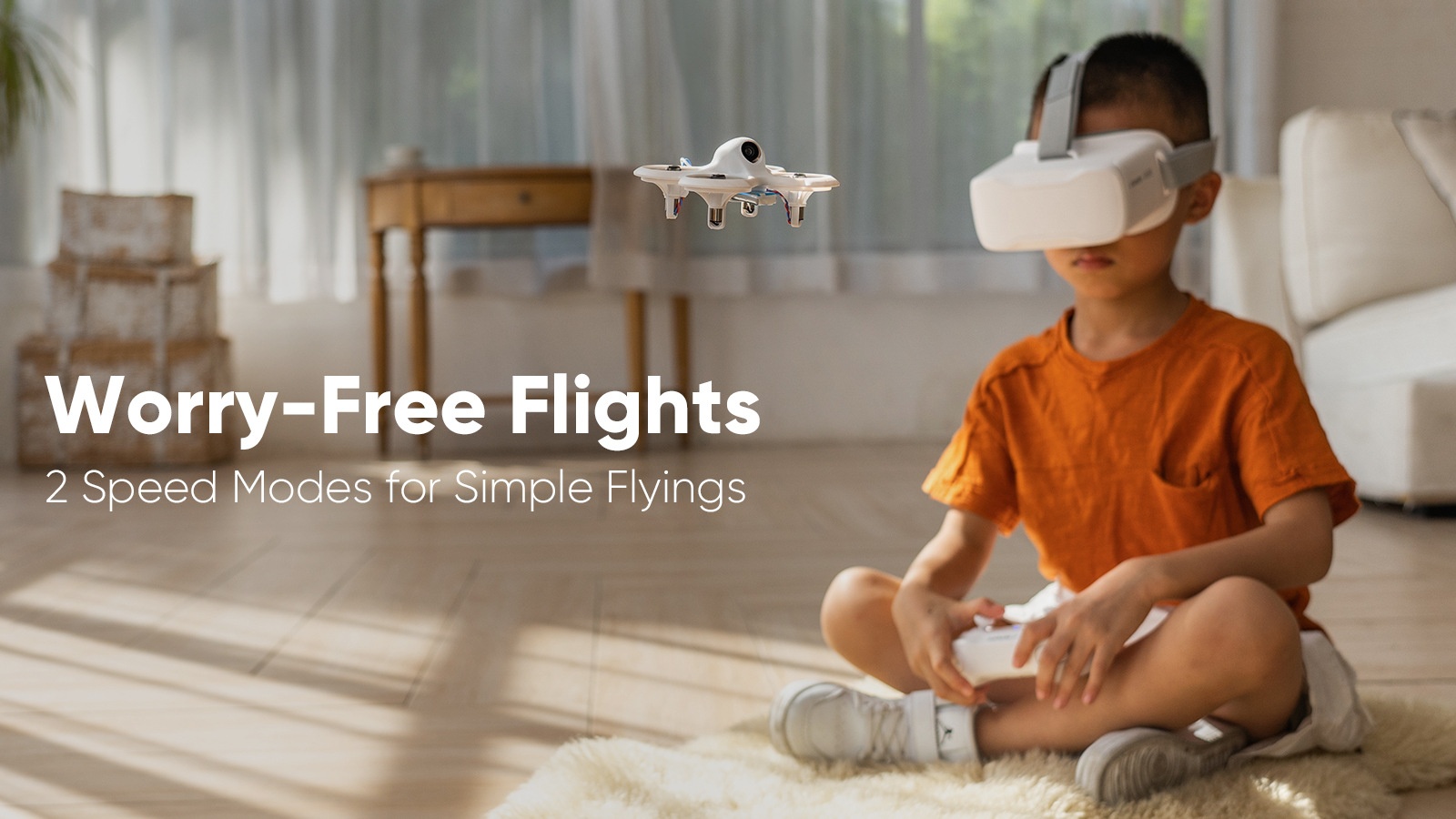 • 輕鬆上手: 輔助定高功能有助於每位使用者輕鬆飛行,降低了操作 FPV 四軸飛行器的難度。