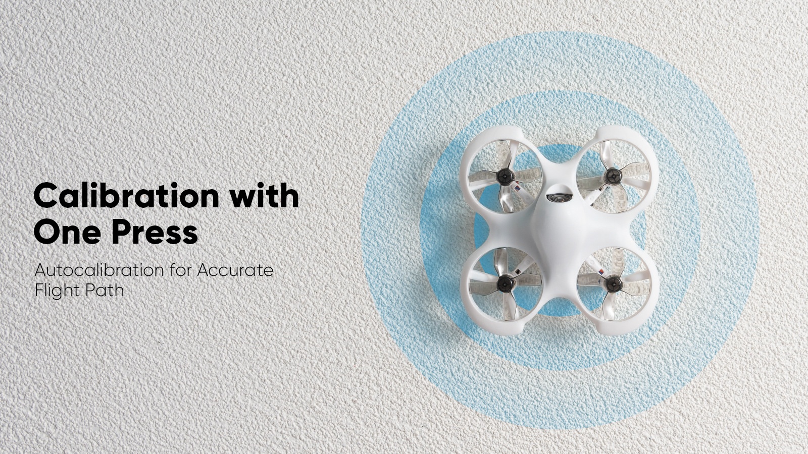 • 簡易校準: 飛行器會自動執行校準,這使得開始飛行非常方便快捷,並確保了每次飛行的穩定性。您只需將其水平放置並通電(連接電池)即可啟動校準模式。