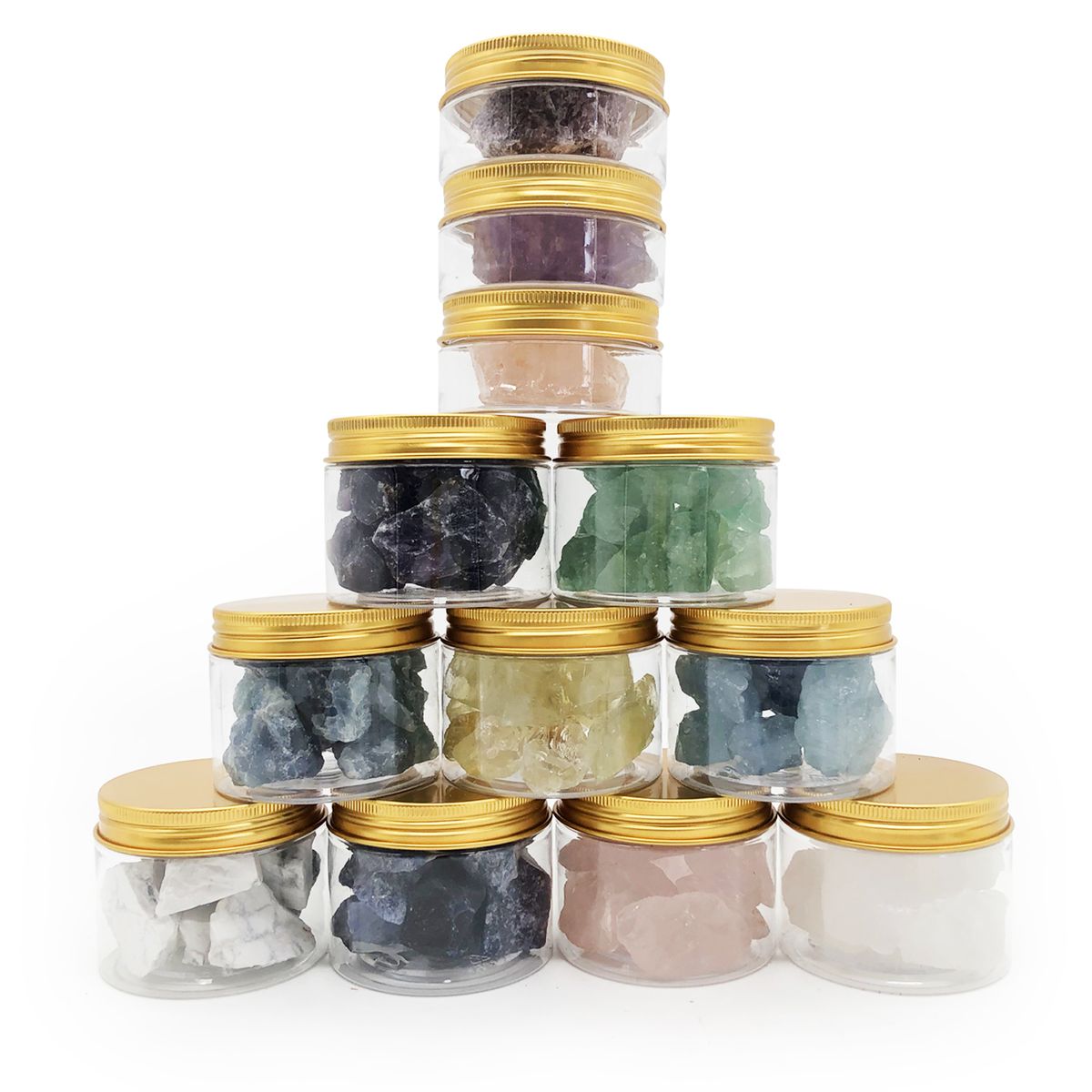 • 未經處理的水晶原石未經拋光,它們的大小結構都各有不同。通常原石會比經過滾磨的原石更易碎。一些治療師認為,原石沒有經過人工處理化,所以能夠散發出更強烈、更純淨的能量。原石具有粗糙的紋理和邊緣、標記、顏色。許多能量治療師和水晶愛好者都認為原石有具大的治療功效,這些未經加工的原石是與大自然連結,並與地球能量產生共鳴的絕佳工具。岩石的形態越自然,其能量就越純淨。