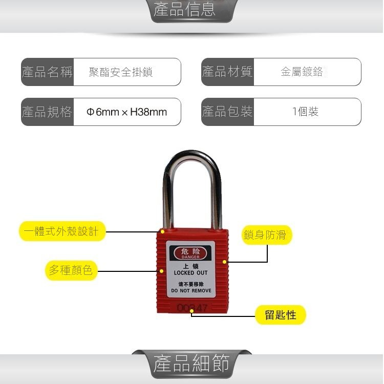 工程塑膠安全掛鎖(藍)聚酯安全掛鎖 動力源鎖定安全掛鎖 14659 - 藍色Φ6mmH38mm