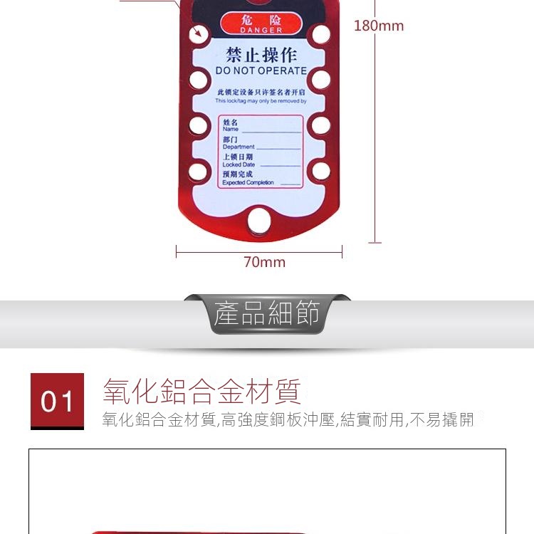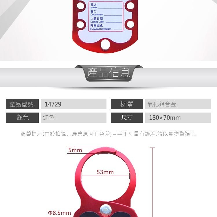 鋁合金聯排鎖鉤 群組鎖定聯排鎖 安全搭扣 擴鎖器 上鎖掛牌 14729 - 紅色180×70mm