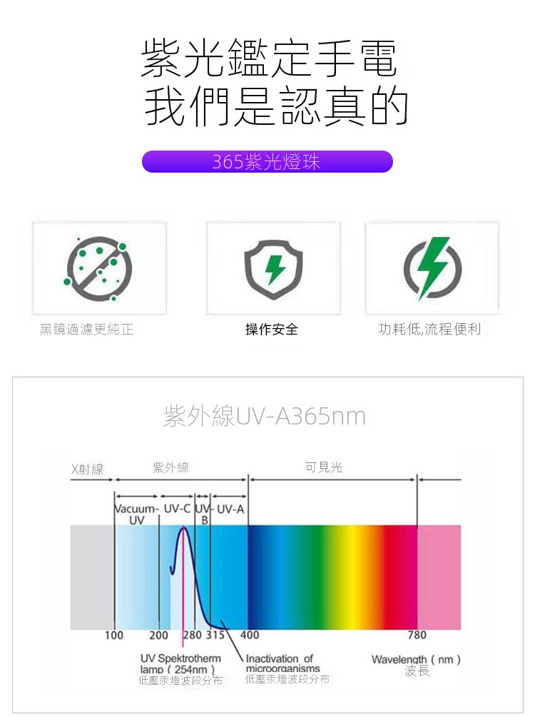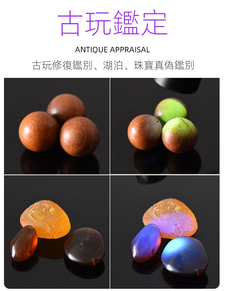 紫光UV手電筒是一款專為專業鑒定與檢測而設計的高效工具,適合古玩鑒定、機械探傷、鈔票真偽識別及真菌鑒定。它配備UV黑鏡過濾技術,能提供純正的紫外光,確保準確性。內置充電設計,續航時間達3-5小時,滿足長時間使用需求。鋁合金材質使其堅固耐用,並具備生活防水功能,適應各種環境。便攜易用,讓您隨時隨地輕鬆應對多種應用場景。