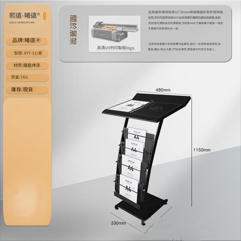 XYT-33 金屬落地式小冊子展示架 - 黑色 |分層結構 |穩固耐用