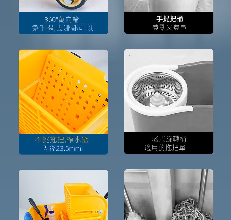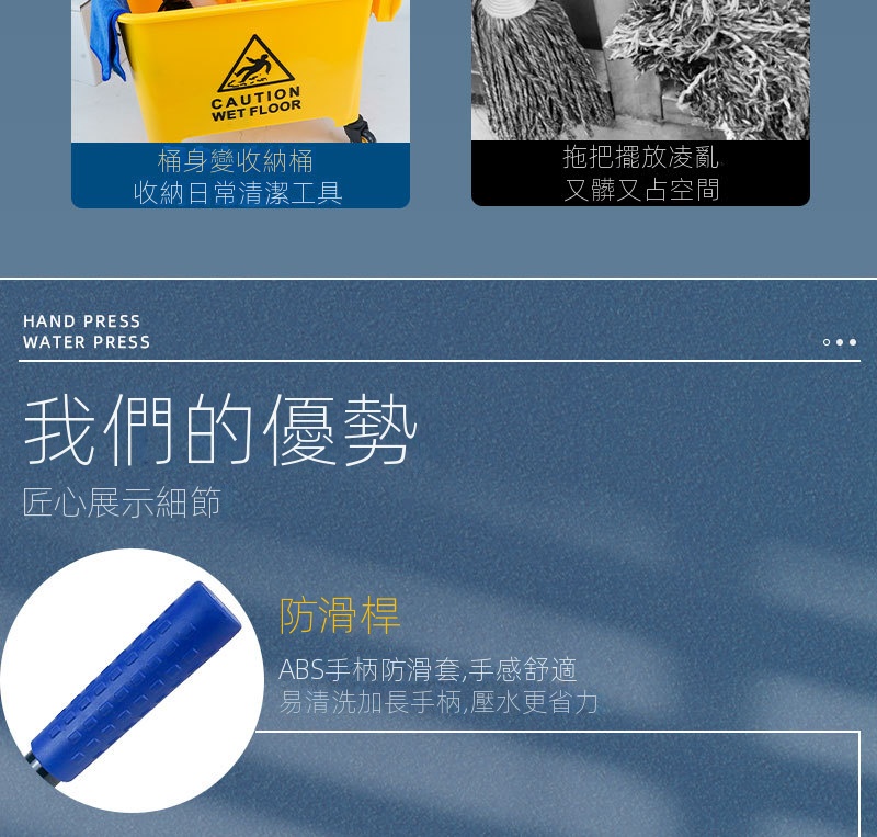 • 清潔工具收納:桶身可作為收納桶,方便存放日常清潔工具