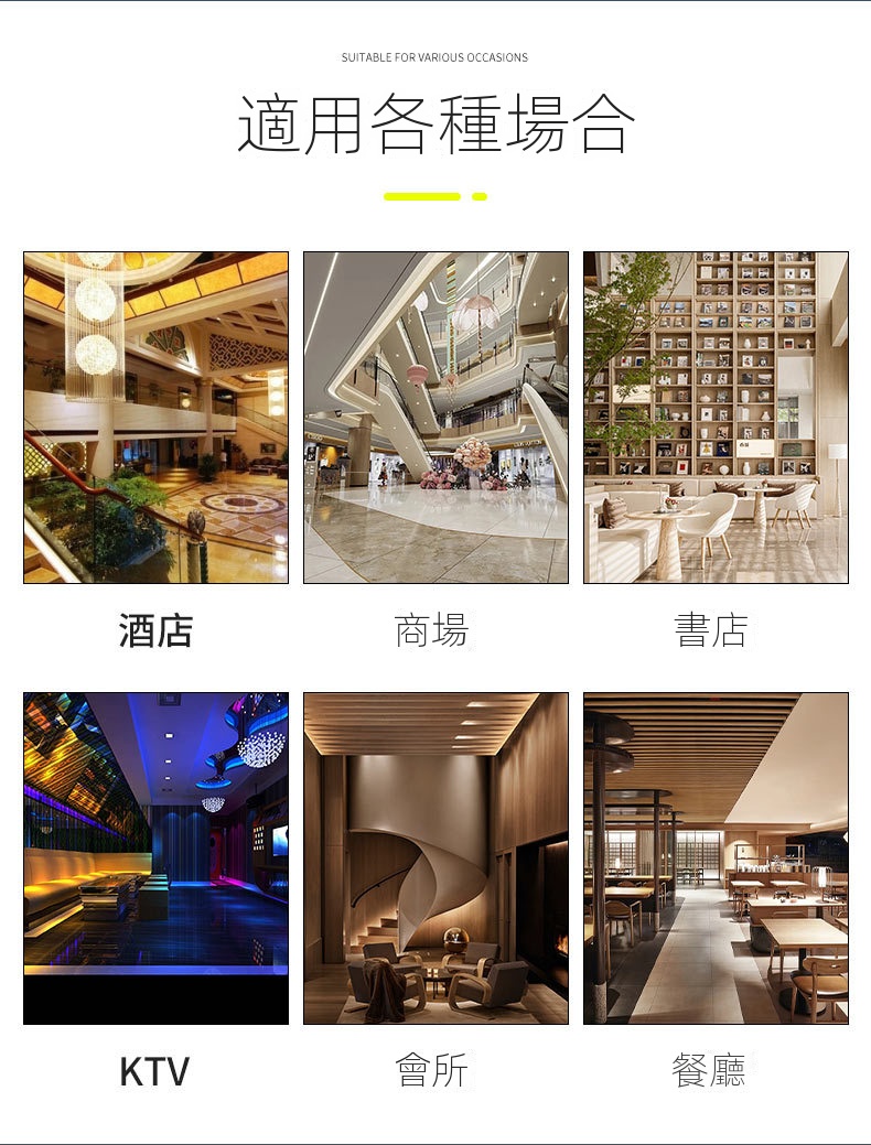 • 適用場合:商場、書店、會所、餐廳