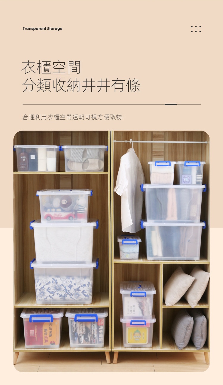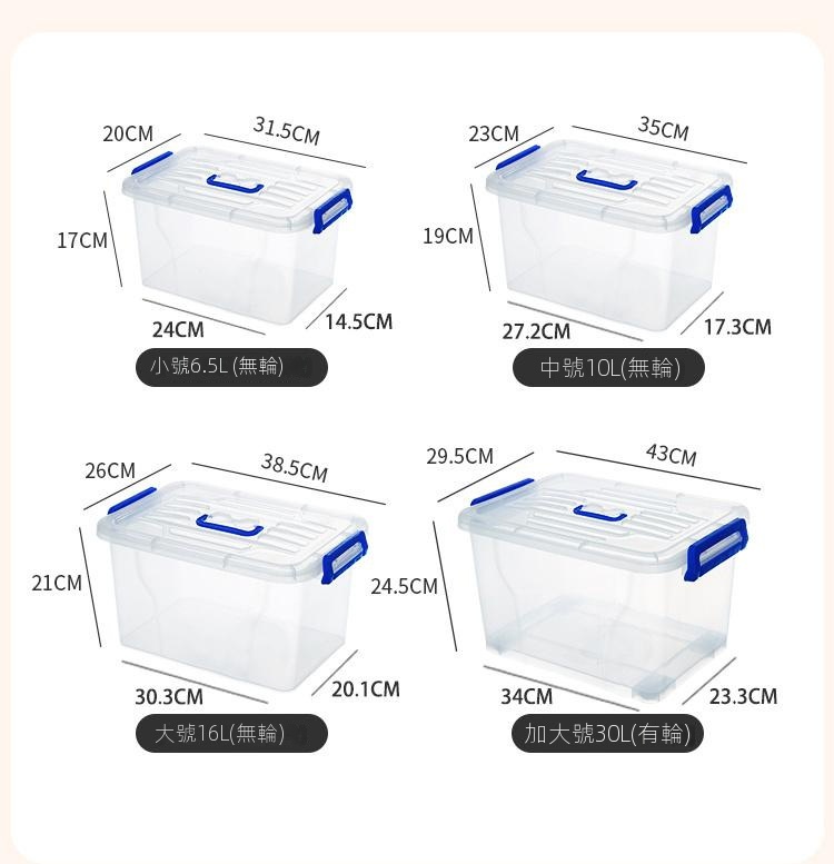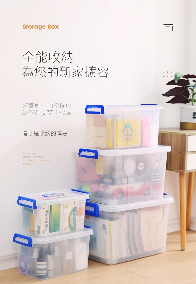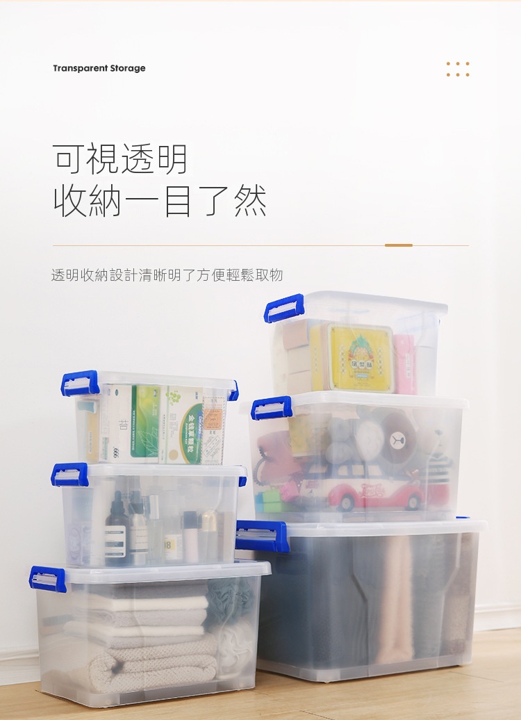 透明塑膠家用收納箱採用嚴選PP材質,無異味且通過甲醛檢測,提供從6.5L至220L容量選擇。無論是衣櫃、客廳還是浴室,皆能輕鬆對應。加厚設計與穩固結構,搭配舒適提手及滑輪,讓取物更便捷。透明箱體一目了然,大小箱子可疊加碼放,合理利用每寸空間。