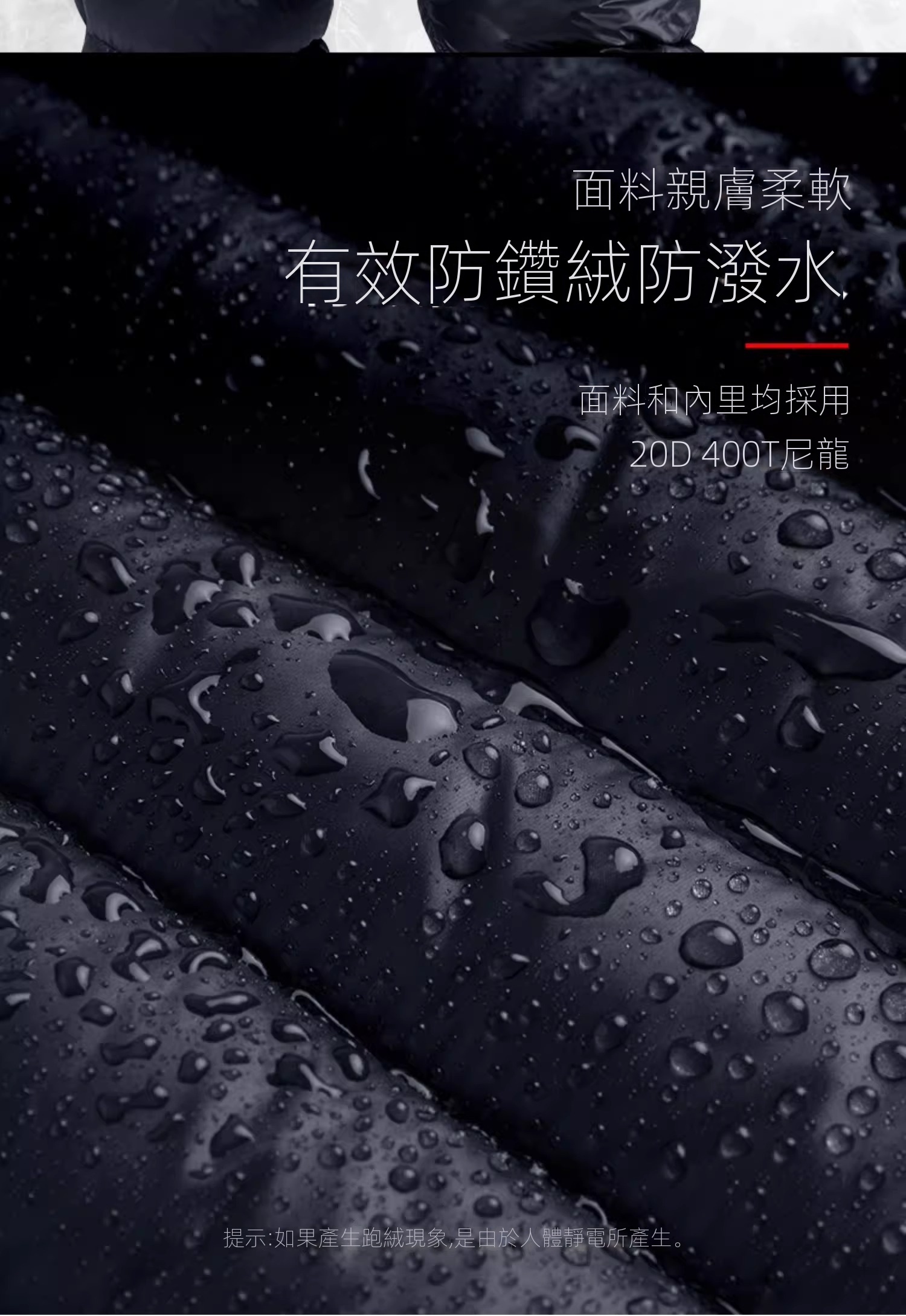 Naturehike戶外側邊口袋防水羽絨褲,是戶外出遊的絕佳夥伴。其外殼與內襯採用20D 400T尼龍,防水且親膚舒適。填充90%鵝絨,蓬鬆度達800,保暖性能超優。側邊口袋設計,方便放置物品。整體設計輕盈小巧,並附有收納袋,方便攜帶,無論是露營、健行或滑雪都適用。彈性腰帶與腳踝處的彈性防風大口襪口,適配不同腰圍,有效阻擋寒風。在-15℃至5℃的環境中,為你抵禦寒冷,輕鬆享受戶外活動。