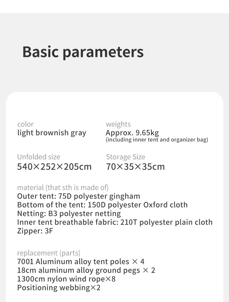 • 重量:約9.65kg(含內帳和收納袋)