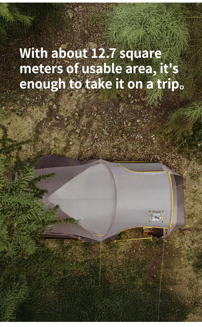 • 超大空間:內部長寬達 2.1 米,可容納 5 - 6 人,前後延伸的大門廳打造 「一室兩廳」 格局,滿足家庭活動需求。
