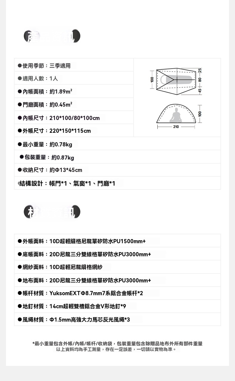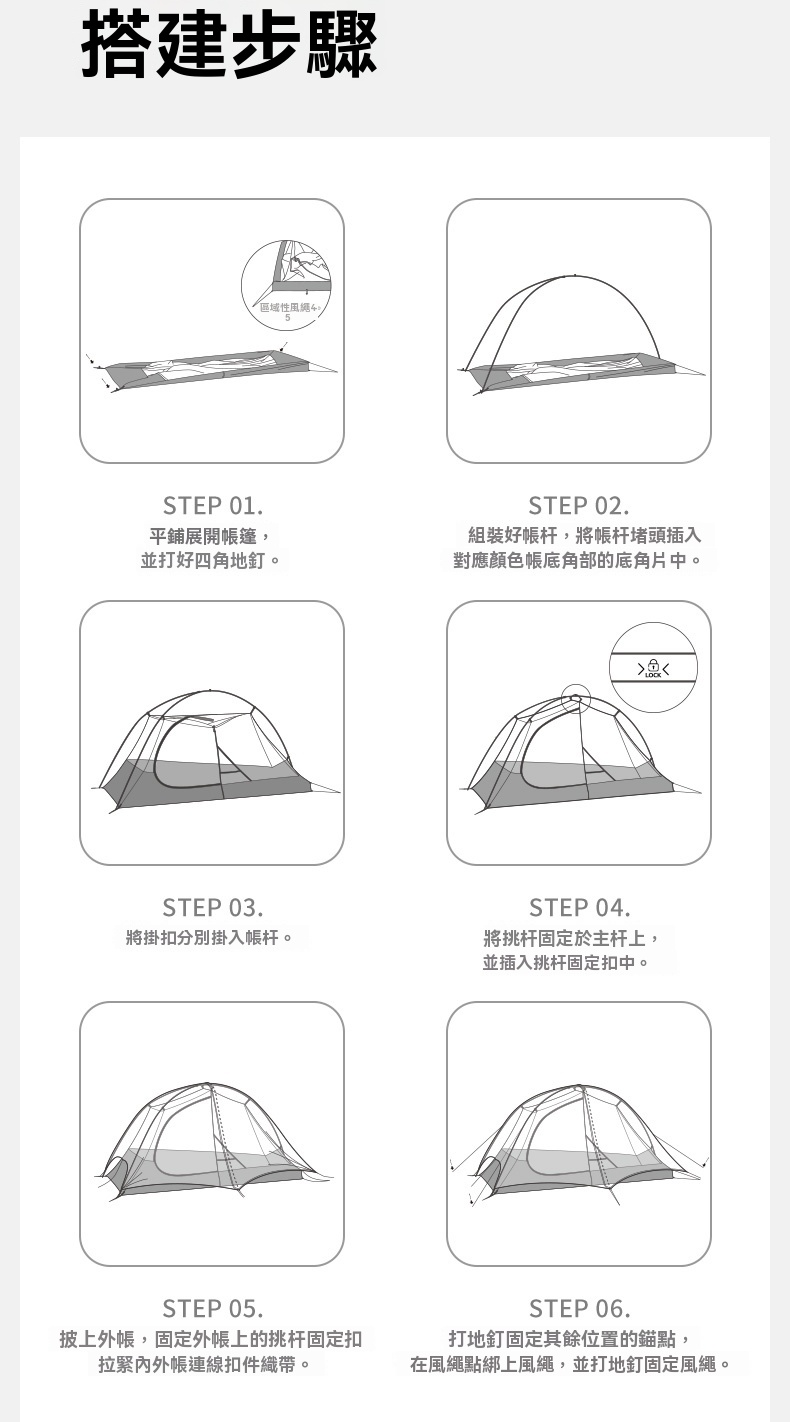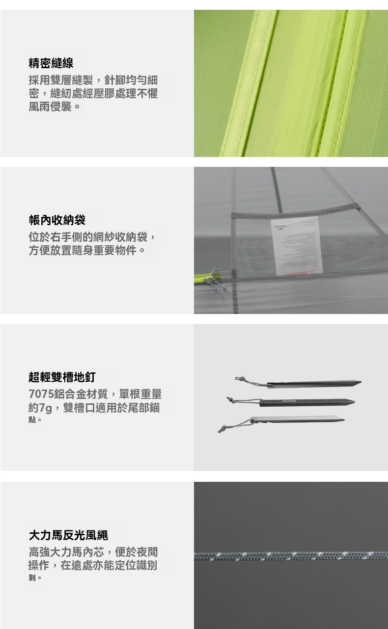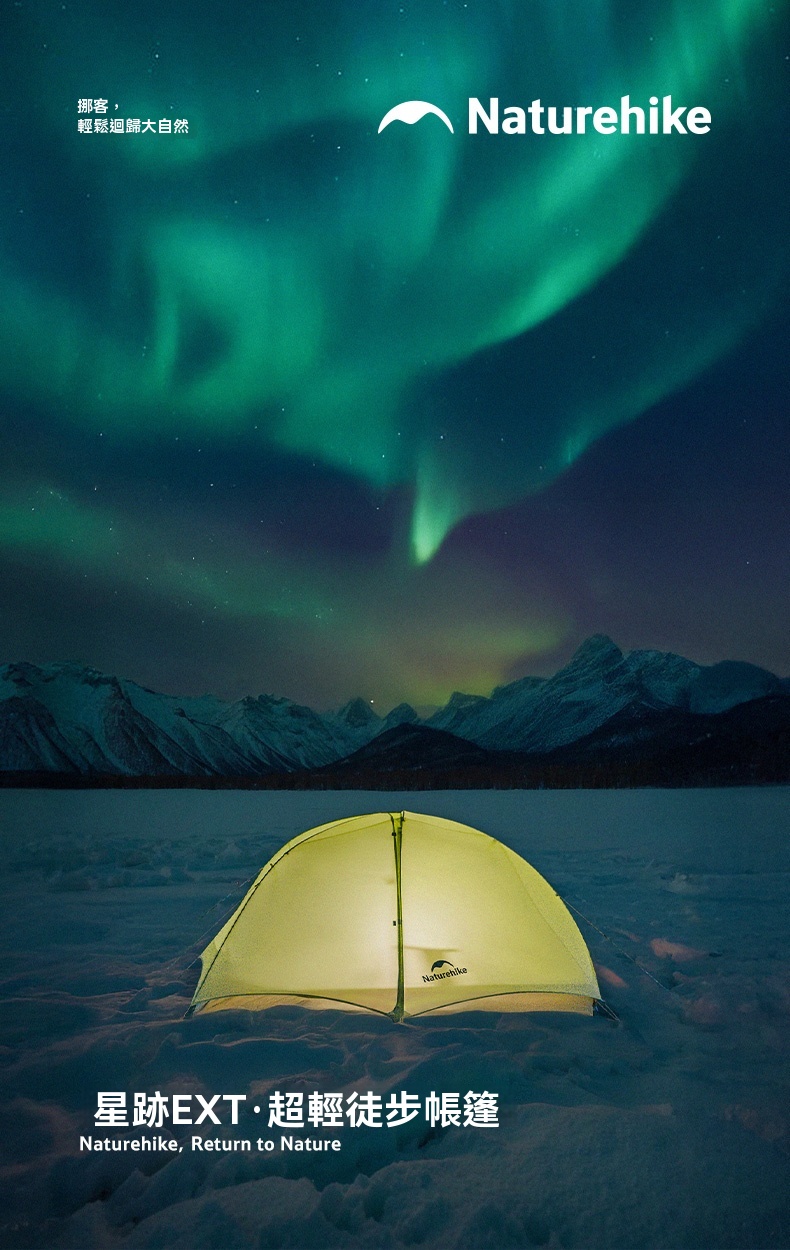 Naturehike Star Trails EXT 背包帳篷幫助您自信開啟下一次戶外探險之旅。這款輕巧緊湊的帳篷專為獨自探險和徒步旅行者設計,提供可靠的遮風避雨之所。其防水外層即使在突如其來的傾盆大雨中也能保持乾爽,而其防風暴設計則可抵禦強風和惡劣天氣。寬敞的內部空間,讓您舒展放鬆,享受非凡舒適。 Star Trails EXT 內部空間寬敞,可輕鬆容納一人及其裝備。精心設計的網狀窗戶,讓您可以一覽無遺地欣賞夜空,同時也能達到最佳通風和觀星體驗。這款帳篷易於搭建和拆卸,設計直觀,結構堅固,是過夜、背包旅行或週末度假的理想選擇。