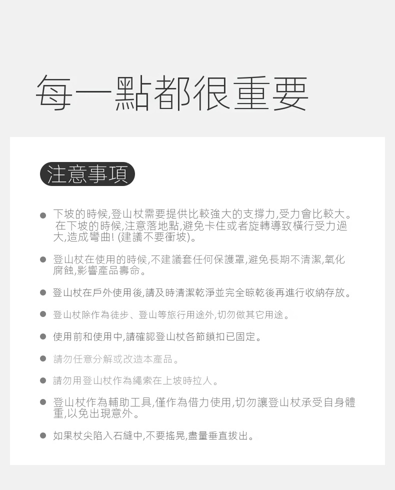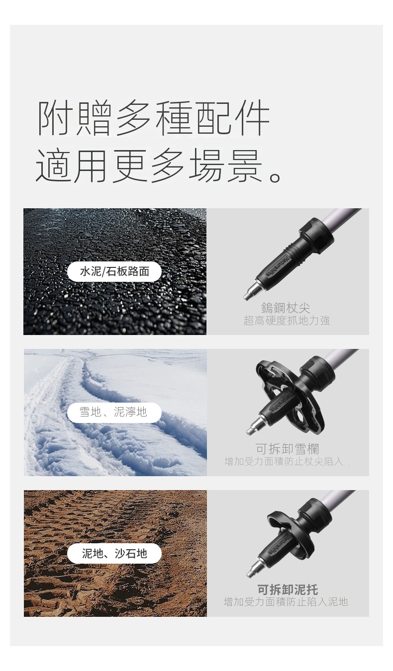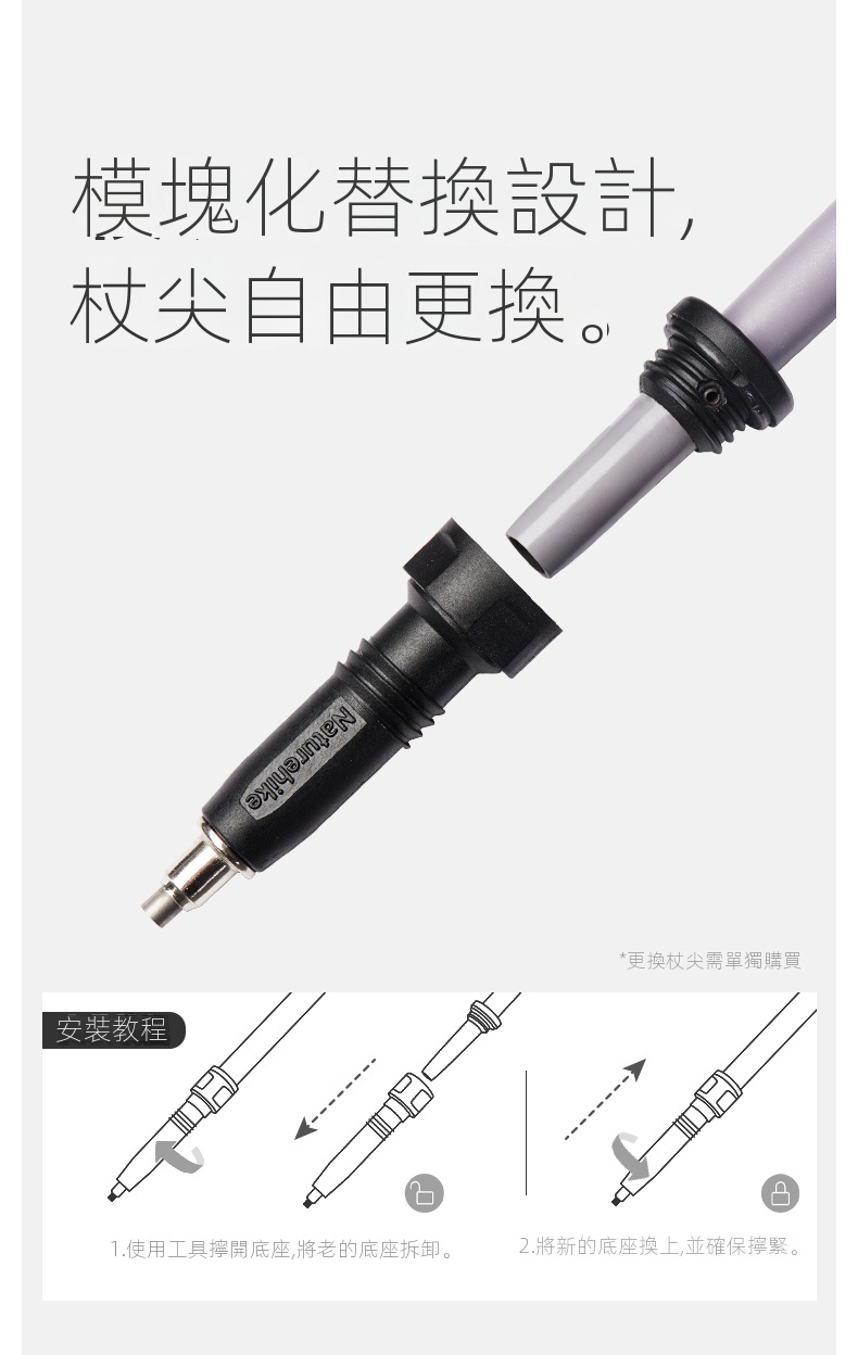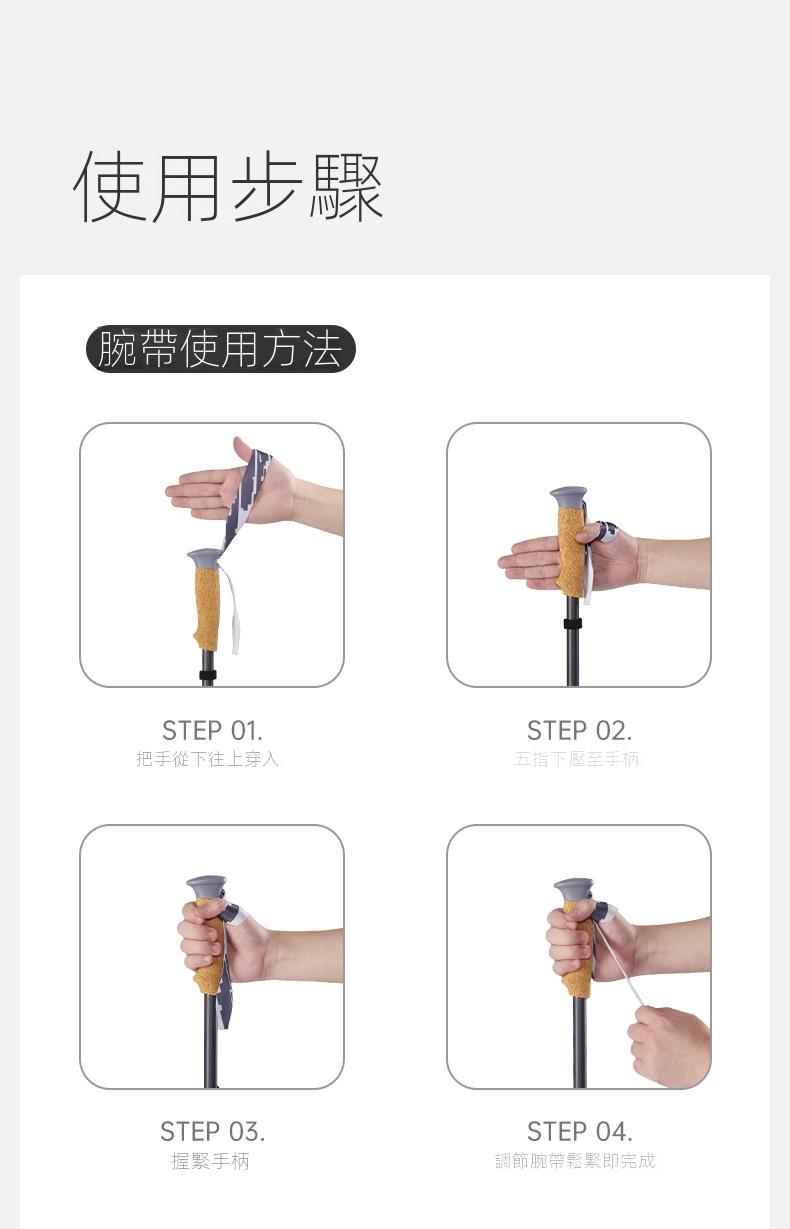 • 可替換腕帶與杖尖,模組化設計更靈活