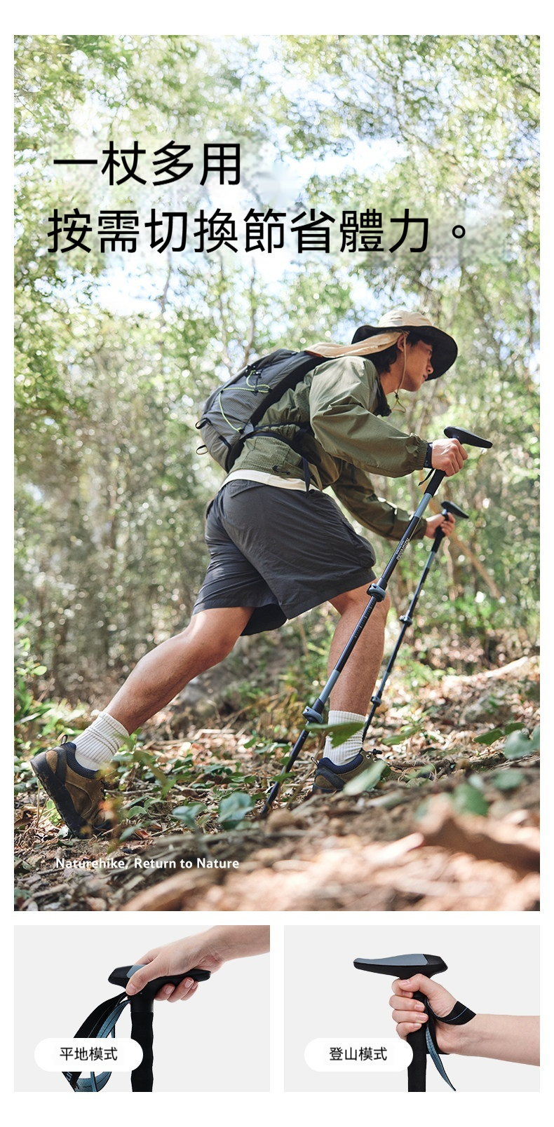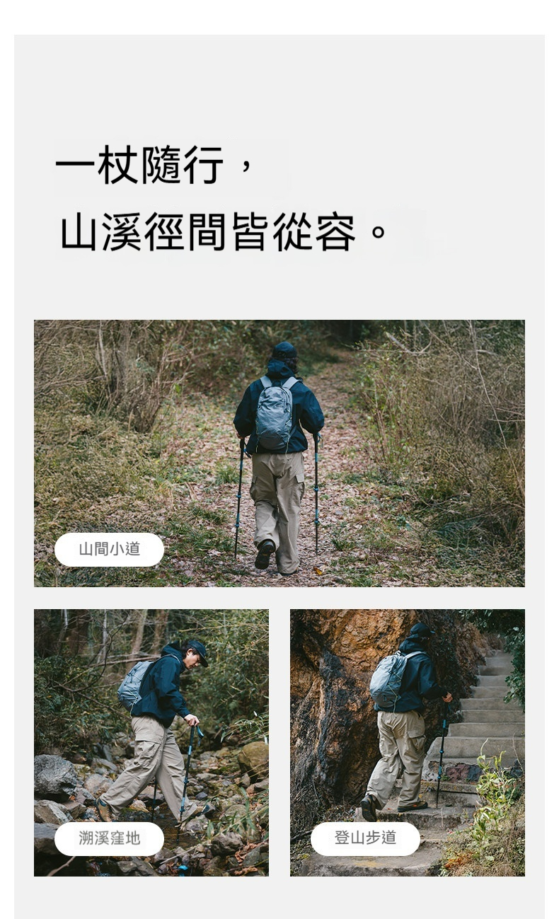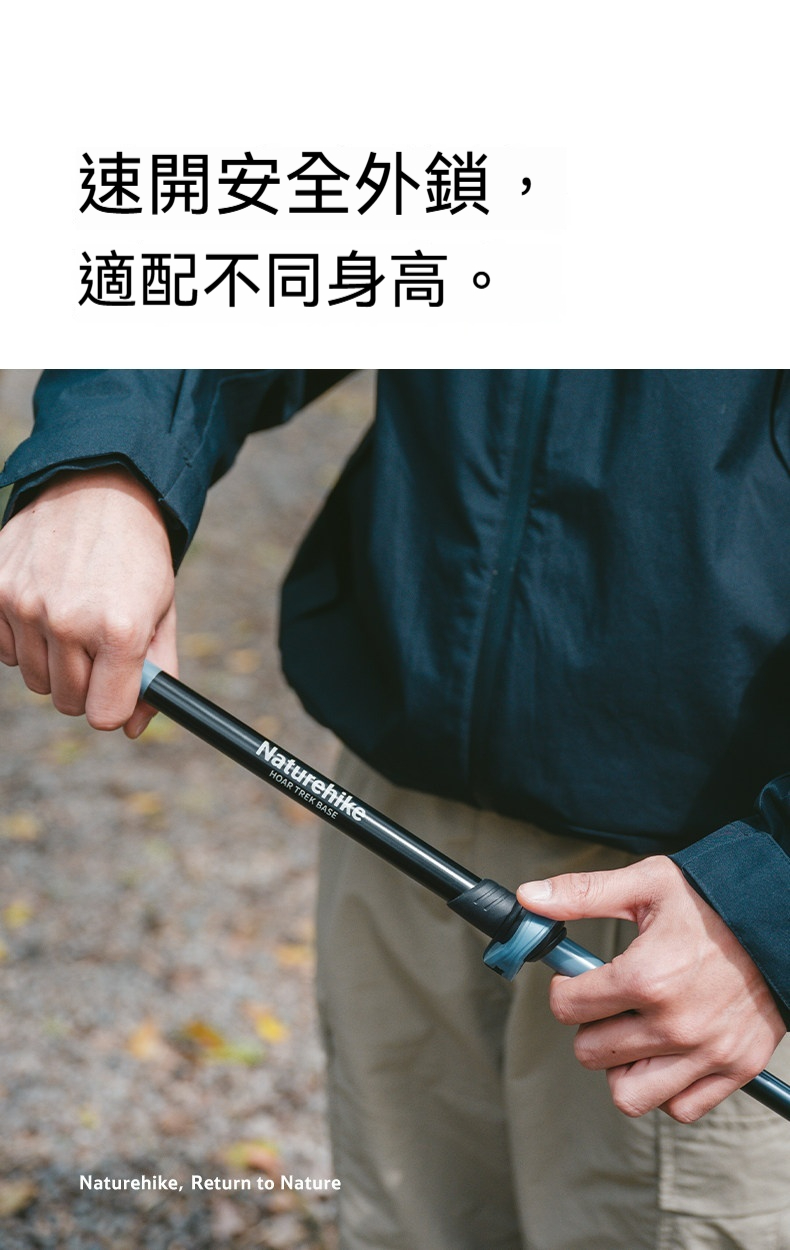 Naturehike 晴雪Base · 鋁合金三節伸縮T型登山杖採用三節伸縮T型設計,助力減負,征服山野更從容。精選18mm加粗鋁合金管材,堅實高韌,無懼斜坡衝擊;搭配速開安全外鎖,可快速調節長度適配不同身高。一枝多用,可依平地與登山模式切換,搭配穩固杖尖與可拆卸泥託,輕鬆適應山道、溯溪等多種地形。