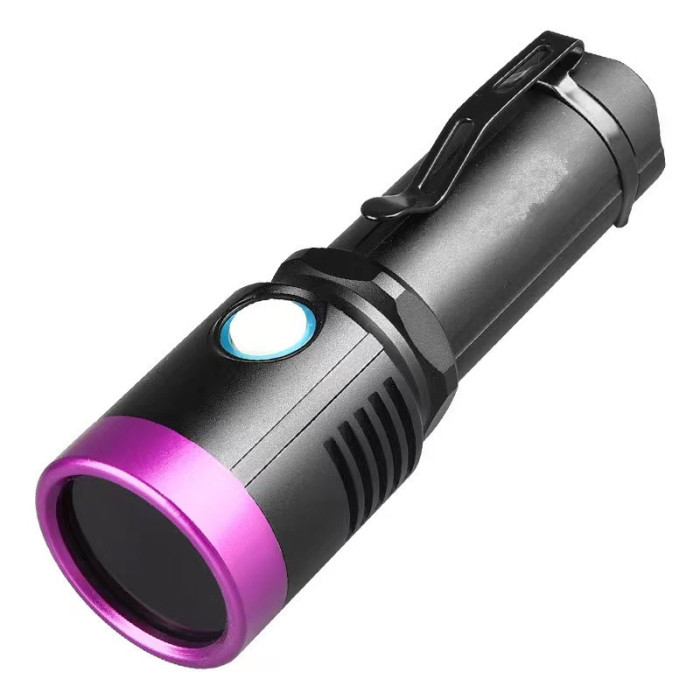 JS23702便攜式紫光手電筒,是一款功能多樣的實用工具。它採用365nm波段的紫光光源,配合黑鏡濾波技術,有效阻隔可見光幹擾,能精準激發螢光物質產生可見光反應 。此手電筒可用於檢測衣物、紙巾等物品中的螢光劑,最低能辨識0.5mg/L以上濃度的螢光增白劑。在暗房中,還能輔助篩檢寵物貓蘚,感染部位會呈現蘋果綠色螢光。同時,它能驗鈔,人民幣特定位置在其照射下會顯現黃色螢光纖維。其內建可充電鋰電池,續航力達3 - 8小時,且材質堅固,IPX4防水等級可防潑濺,方便攜帶,滿足多種場景需求 。
