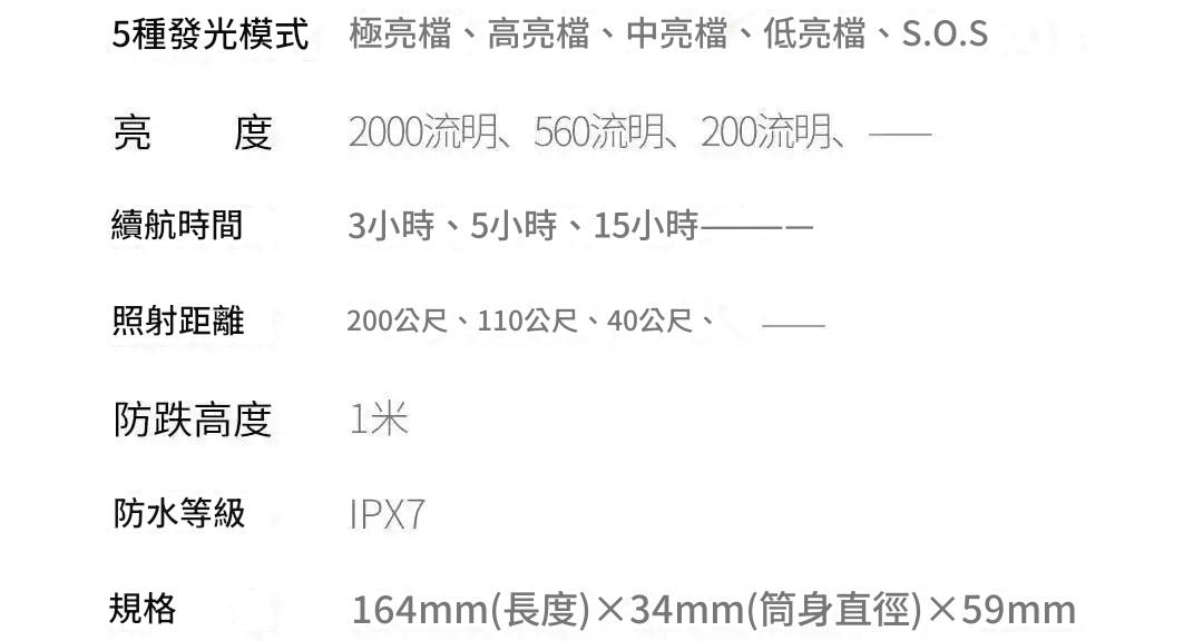 在戶外活動中,擁有一款可靠的強光手電筒至關重要,Nextool納拓戶外強光手電筒便是你的得力之選。它配備2000流明LED燈珠 ,亮度媲美汽車大燈,黑夜中照明距離極遠,為你驅散黑暗。僅重214g,輕巧便攜,直筒筒身搭配黑灰配色,簡約又有質感。它具備IPX7級防水能力,可在1米深水中浸泡30分鐘不受損,還通過1.5m跌落測試,結實耐用。擁有2600mAh鋰電池,續航力達2 - 70小時,支援直接用數據線充電,電池也可拆卸更換。照明模式豐富,有極亮、高亮、中亮、低亮、SOS和爆閃6種,滿足不同場景需求,SOS和爆閃模式還能用於求救。高強度航空鋁材筒身,陽極處理,耐用耐磨,頭部有高效散熱片和防滾動設計,讓你用得安心又順手。