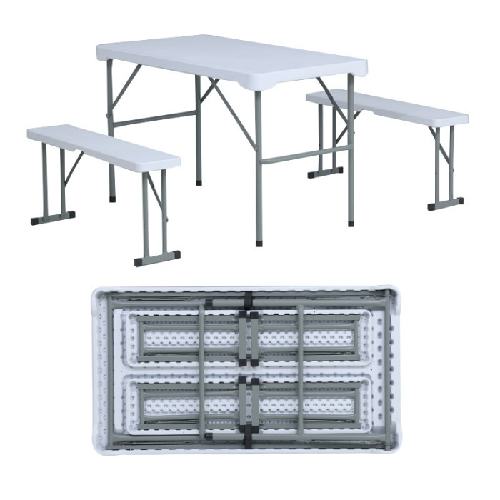 Outlet Express HK 生活百貨城在香港觀塘提供 輕便戶外餐桌凳組合 | 桌:113*62*71cm ,凳:90*20.5*41cm | 輕鬆收納 在那裡買邊到買或邊度買代理資料及價錢實惠借批發優惠以及公司學校報價,更可送到香港或澳門而部份產品比團購更優惠,更可以為你推薦推介相似產品及優點缺點,請留意我們最新產品價格更新。