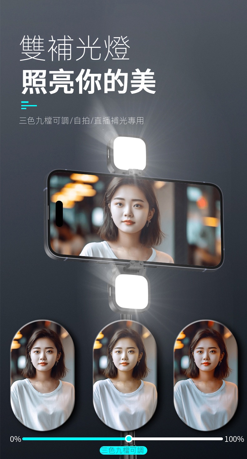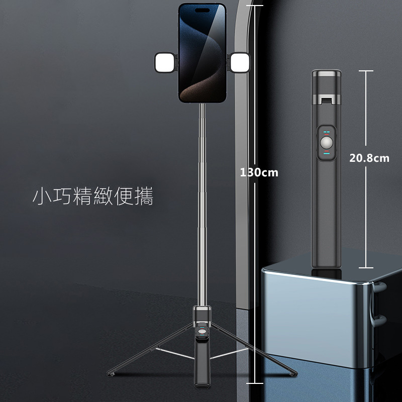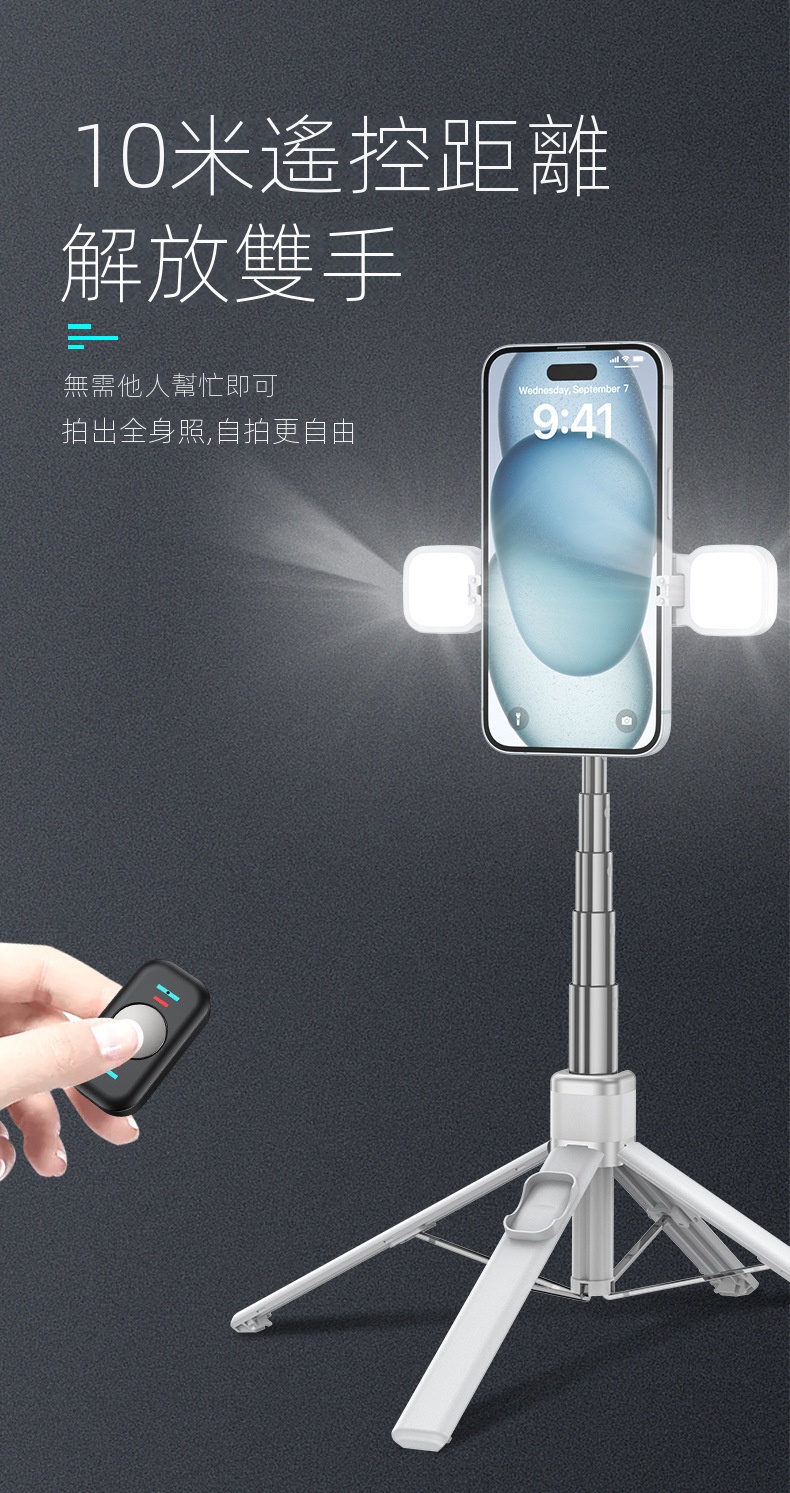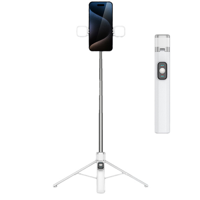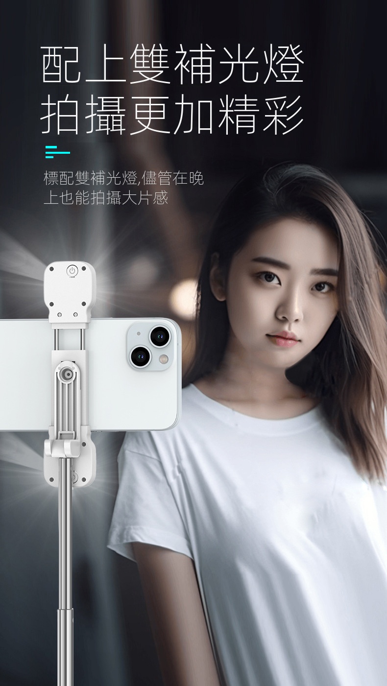 M05SP藍牙自拍杆130cm配雙燈-白色 | 7節伸縮桿 | 一鍵拍照 | 專業補光