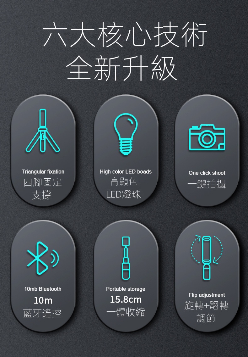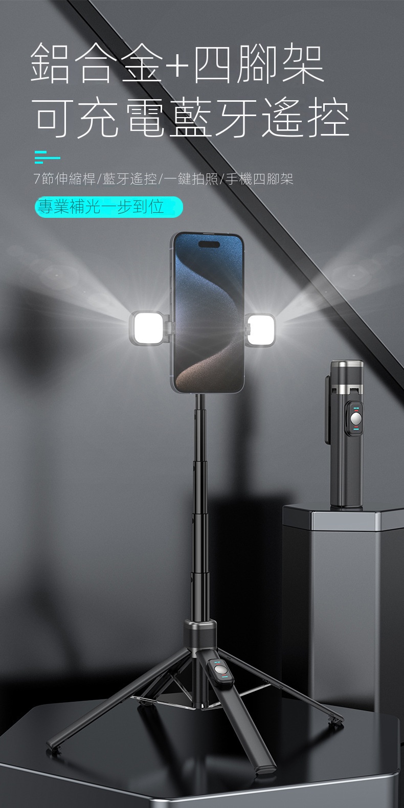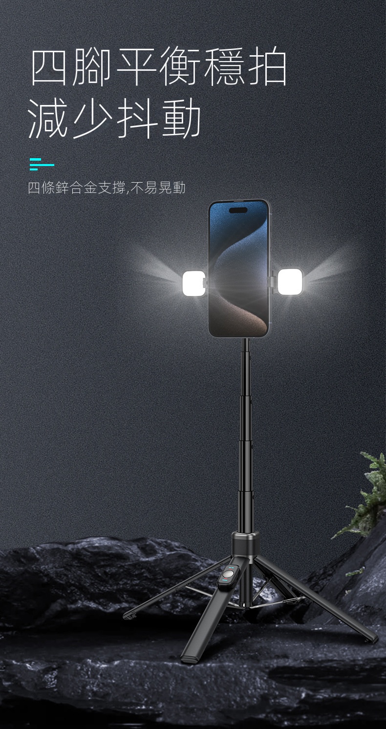 M05SP藍牙自拍杆是一款專為拍攝愛好者設計的高性能自拍工具。它配備四腳固定支撐,確保穩定性,避免打滑。可拆式補光燈搭載高顯色LED燈珠,讓您的照片更具專業感。憑藉10米藍牙遙控,您可以輕鬆拍攝,完全解放雙手。其旋轉和翻轉調節功能滿足不同拍攝需求,而可充電的遙控器則省去了更換電池的麻煩。鋁合金拉桿讓M05SP既堅固又輕巧,是您完美自拍的最佳夥伴。