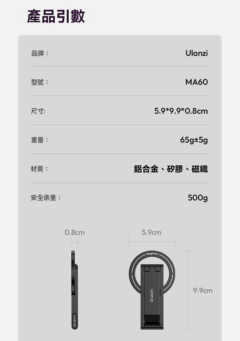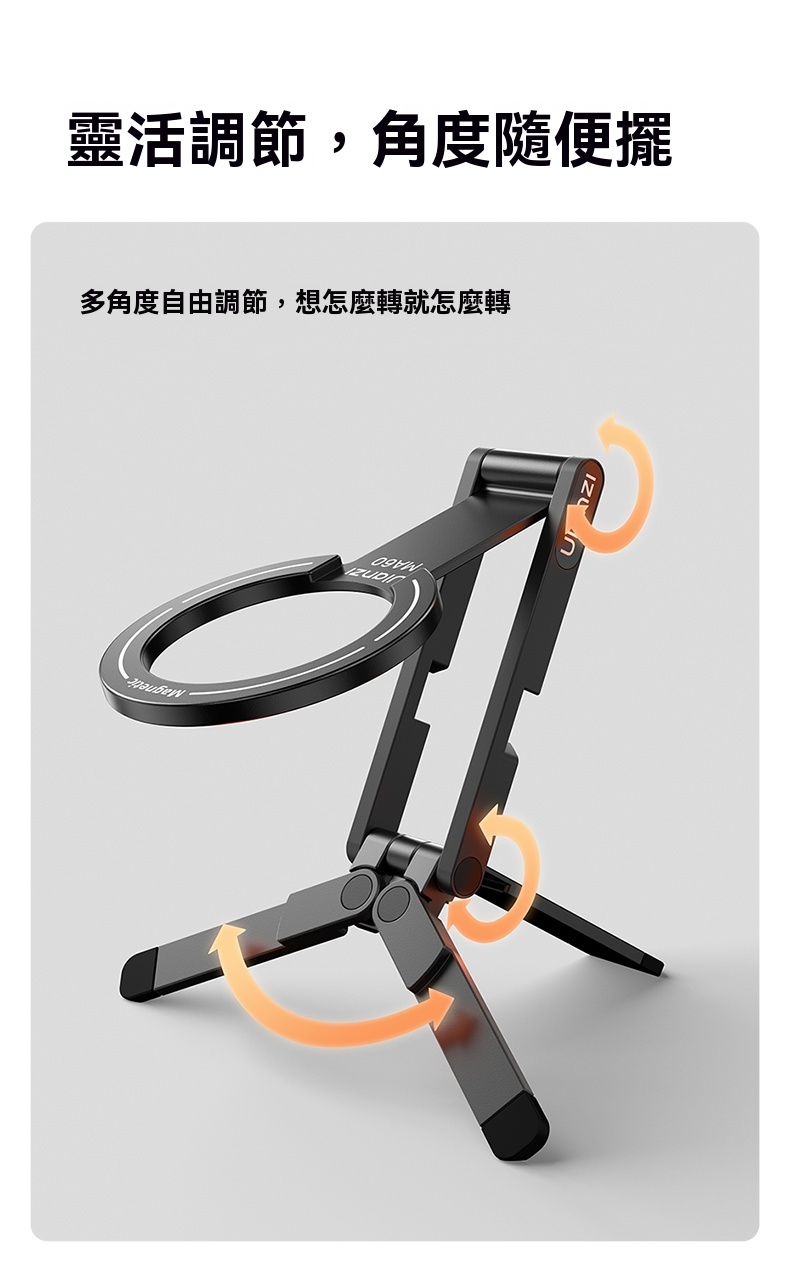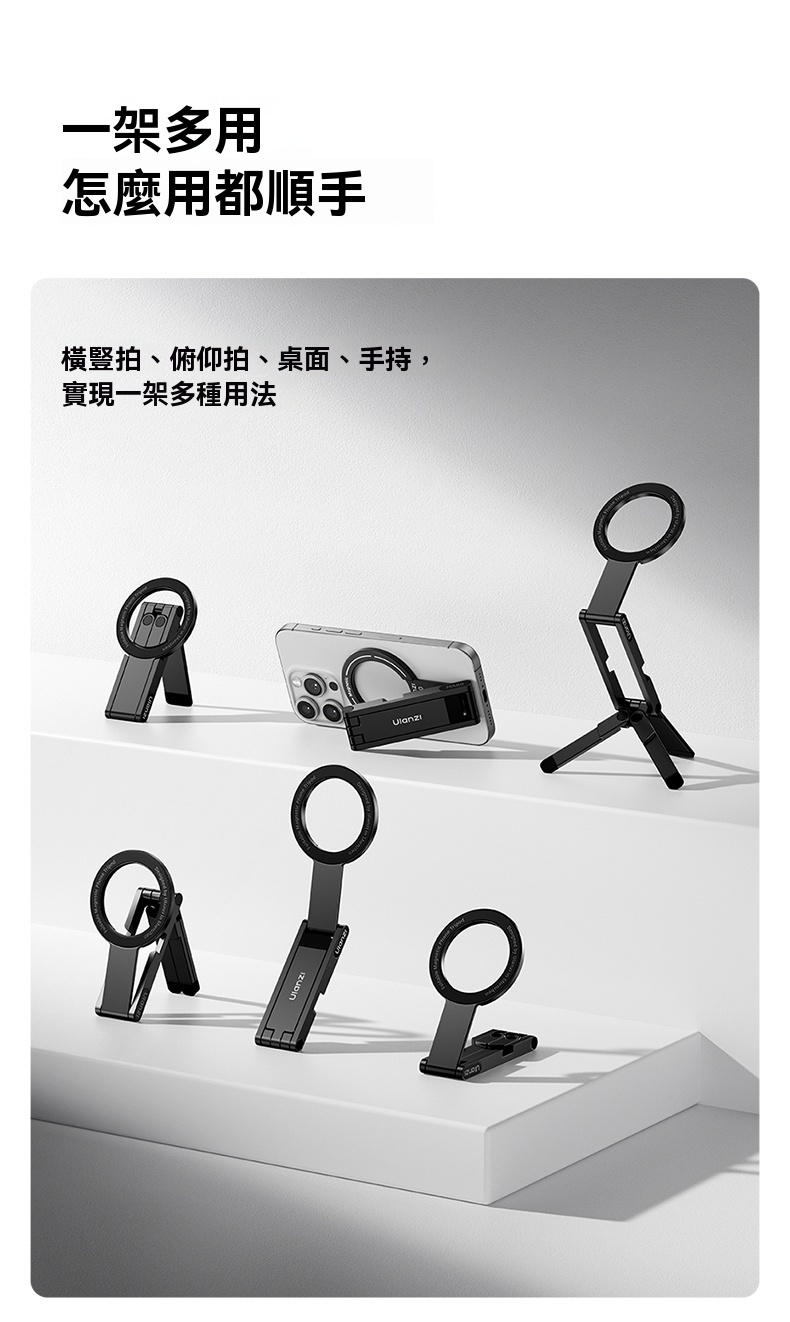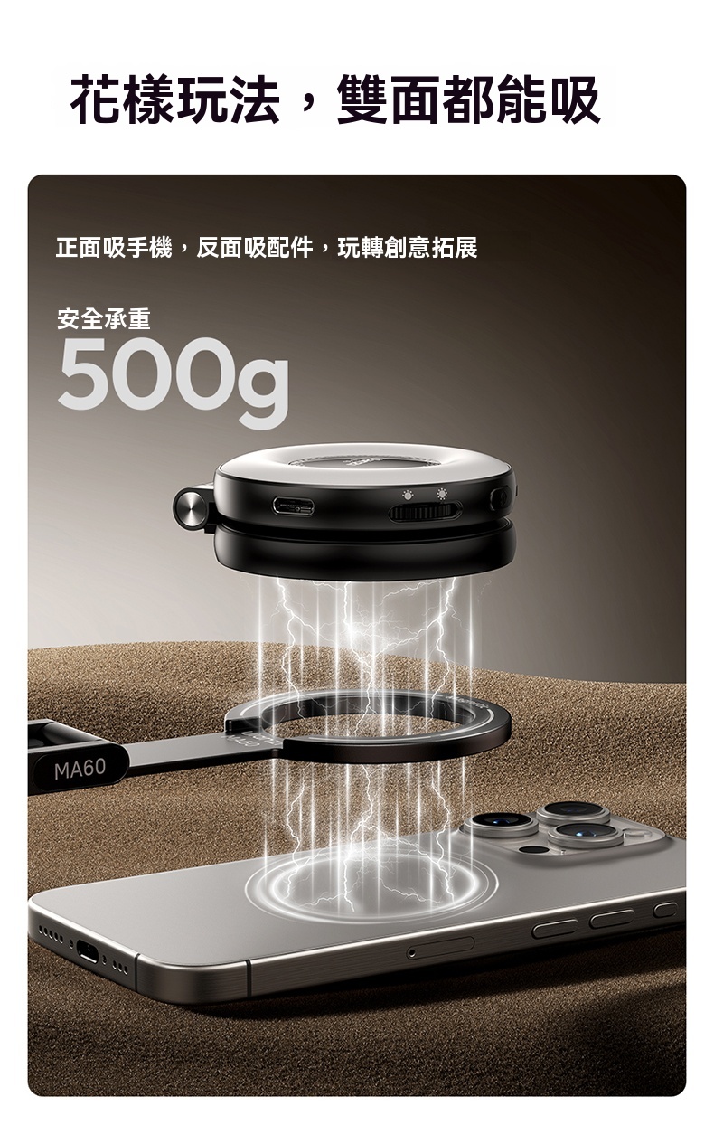• 收納便利:折疊設計使其收納不佔空間,日常可直接磁吸在手機殼後面,需要時隨時取下使用,簡單又方便 。