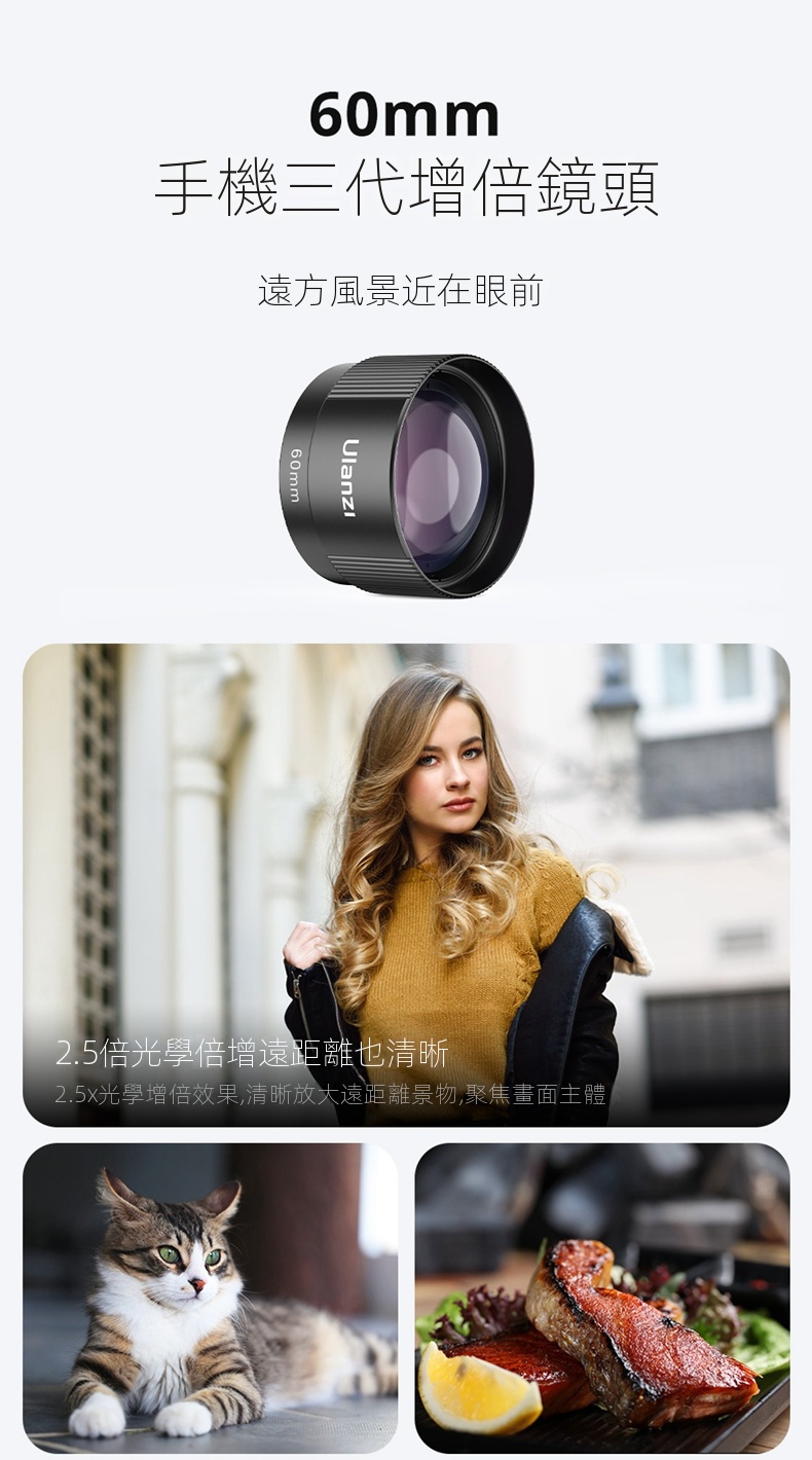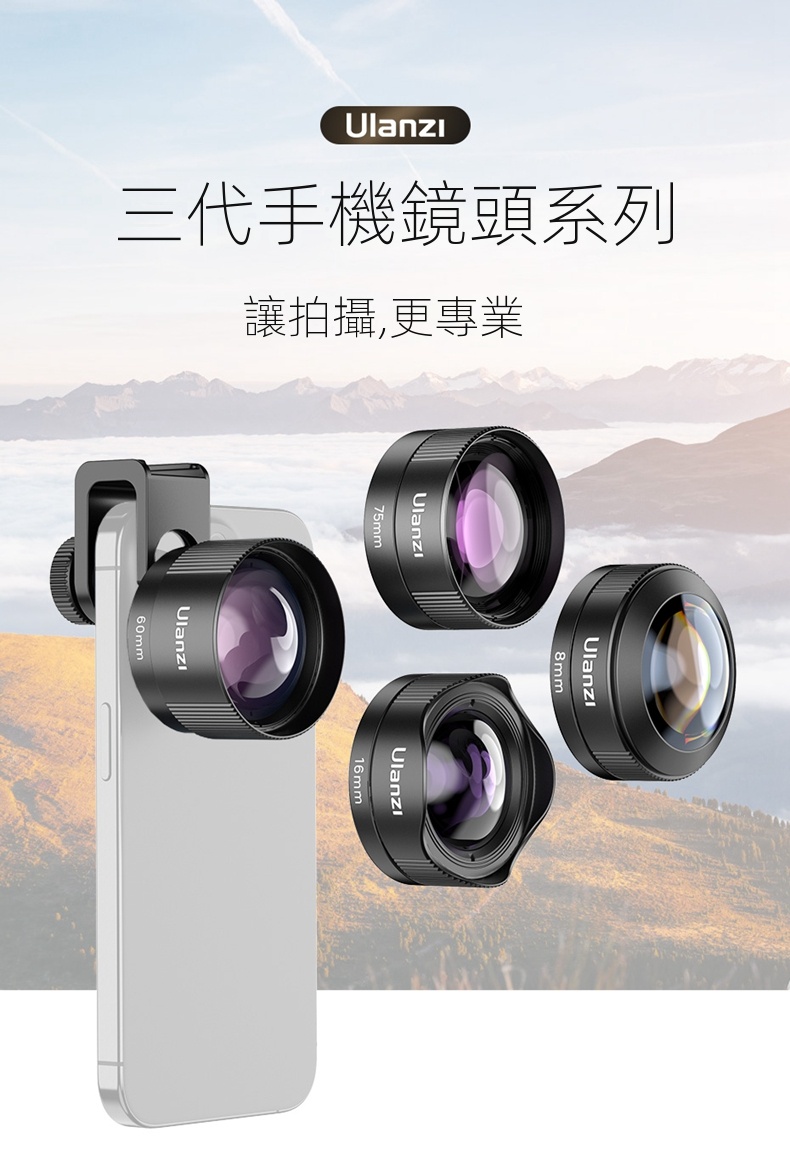 Ulanzi CL-006三代手機增倍鏡頭,是提升手機拍攝效果的得力配件。其焦距達60mm ,能實現增倍拍攝,輕鬆拉近遠處景物,拍攝人像時可虛化背景突出主體,拍風景也能捕捉遠處細節。鏡頭採用優質光學玻璃,有效減少色差與畸變,呈現清晰、色彩還原度高的畫面。夾子式設計適配各類手機,安裝簡便,隨時隨地都能讓你的手機擁有更強大的拍攝能力,無論是日常記錄,還是專業創作,都能滿足需求。