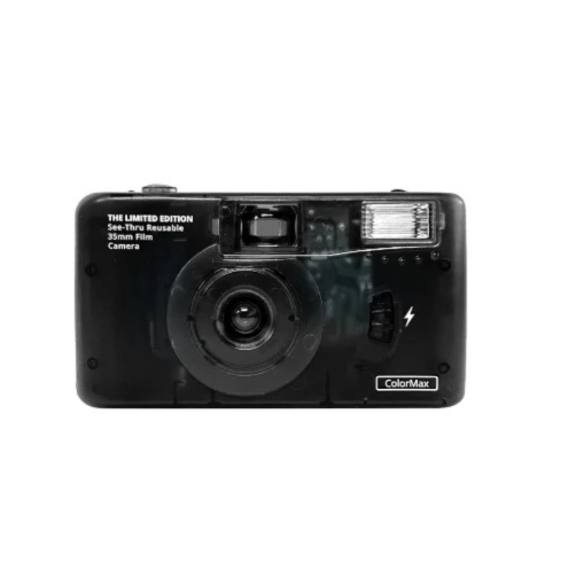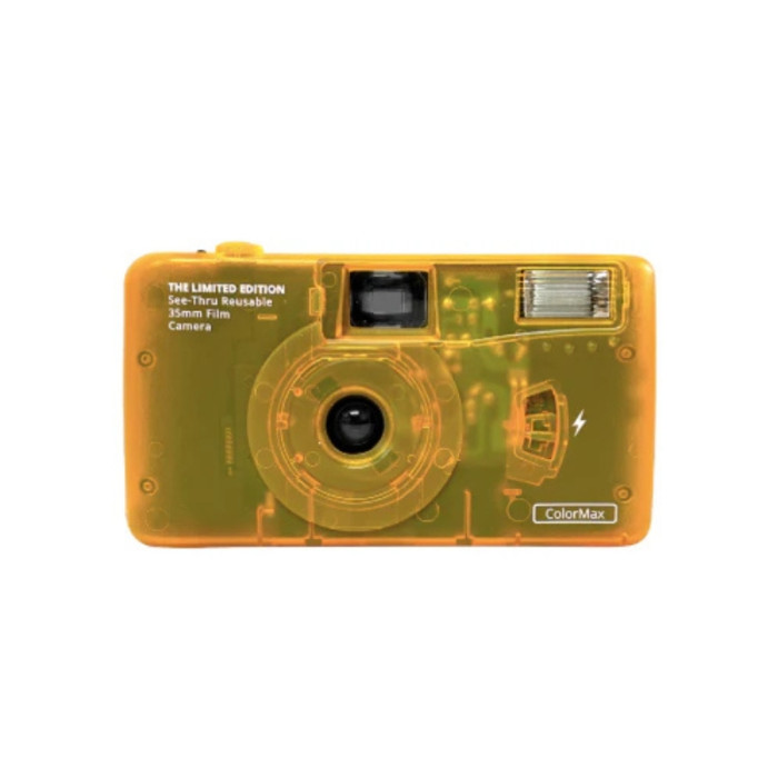 KODAK柯達ColorMax可重複使用菲林相機組超有魅力!其透明機身設計獨特吸睛。套裝貼心附贈Gold200底片,到手馬上就能開拍。相機採用31mm、F=11的1元素光學鏡頭,免對焦設計,1m至無窮遠的拍攝距離都能輕鬆應對,快門速度為1/125s +/- 1級 。透過手動捲片傳輸135規格(24x36mm)的菲林。內建閃光燈,配合1顆AA電池供電。附腕帶方便攜帶,主體為ABS塑膠材質,輕巧便攜,不含膠捲及電池時僅重95±3g 。