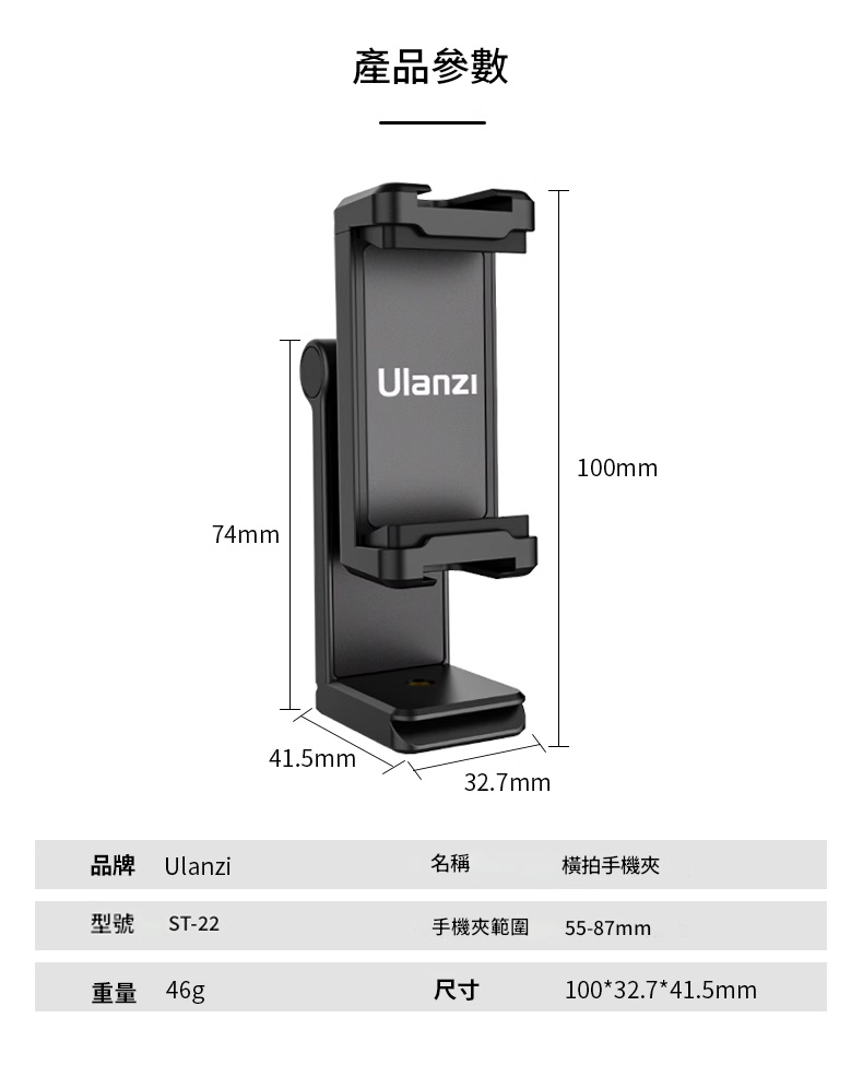 Outlet Express HK 生活百貨城在香港觀塘提供 Ulanzi ST-22 便攜橫拍手機夾 - 黑色 | 雙冷靴接口 | 適配多種設備 | 360度旋轉 | 香港行貨 在那裡買邊到買或邊度買代理資料及價錢實惠借批發優惠以及公司學校報價,更可送到香港或澳門而部份產品比團購更優惠,更可以為你推薦推介相似產品及優點缺點,請留意我們最新產品價格更新。