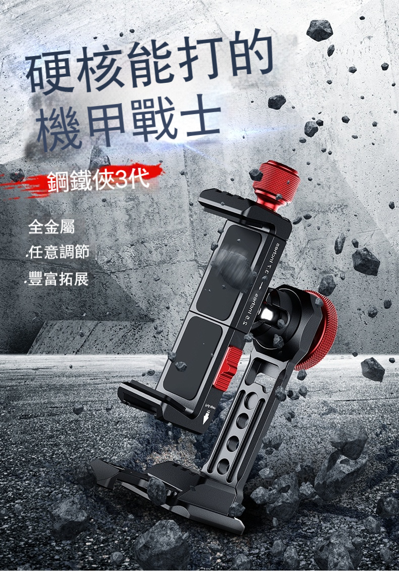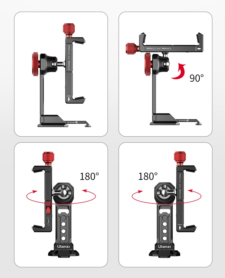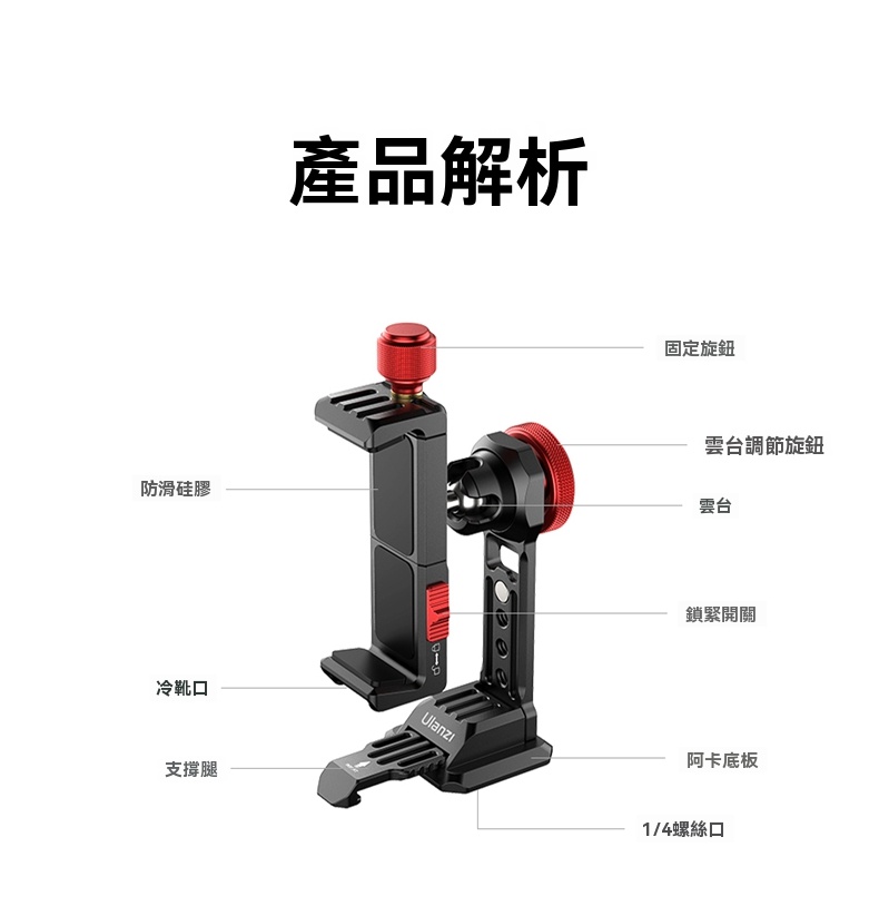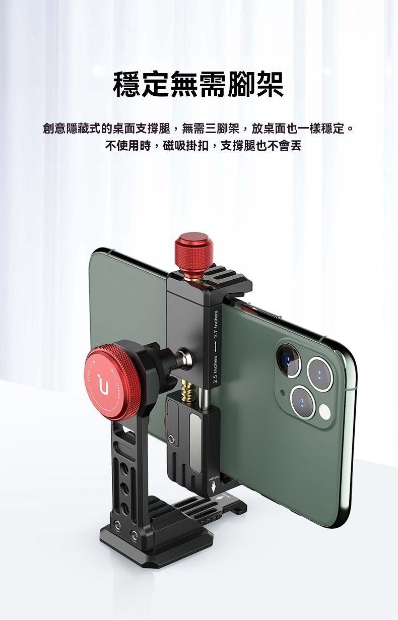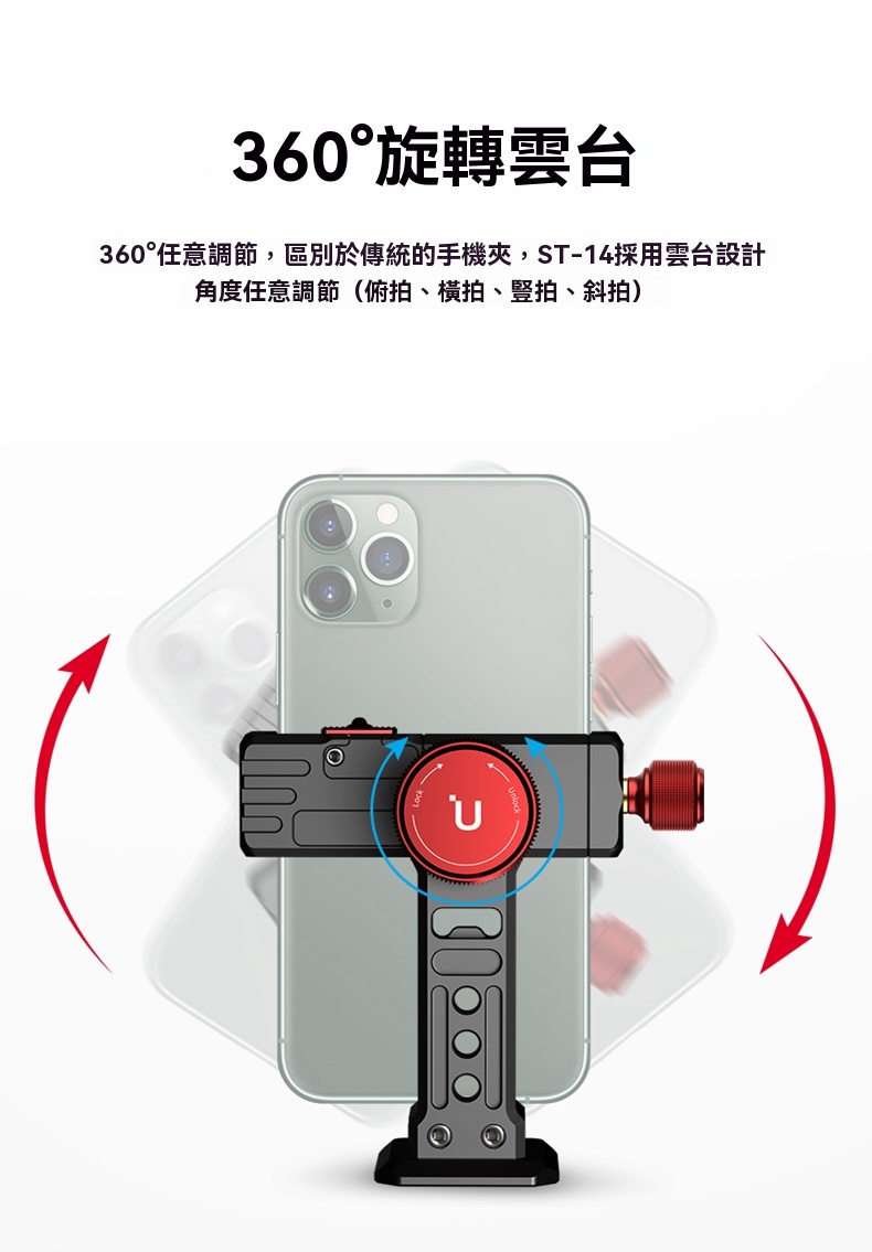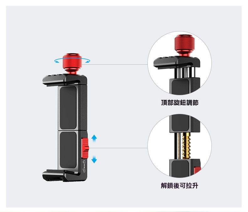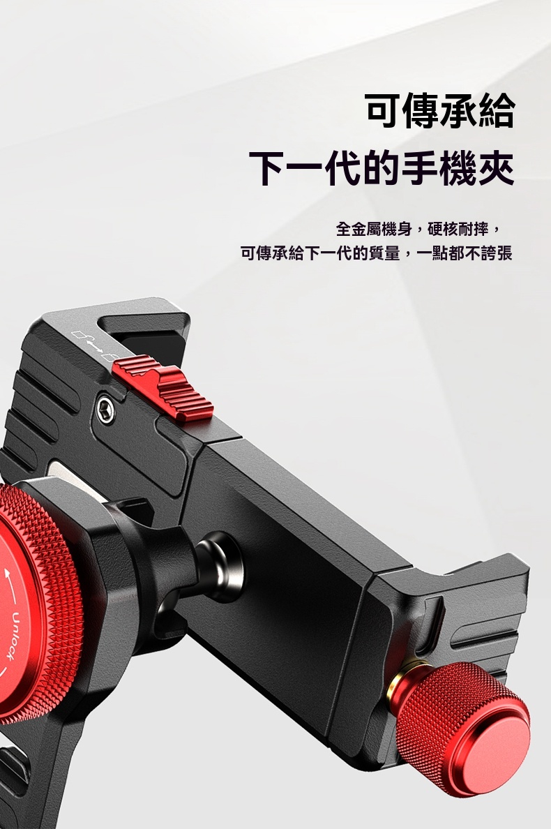 • 頂部旋鈕與鎖緊開關設計,確保手機牢固固定