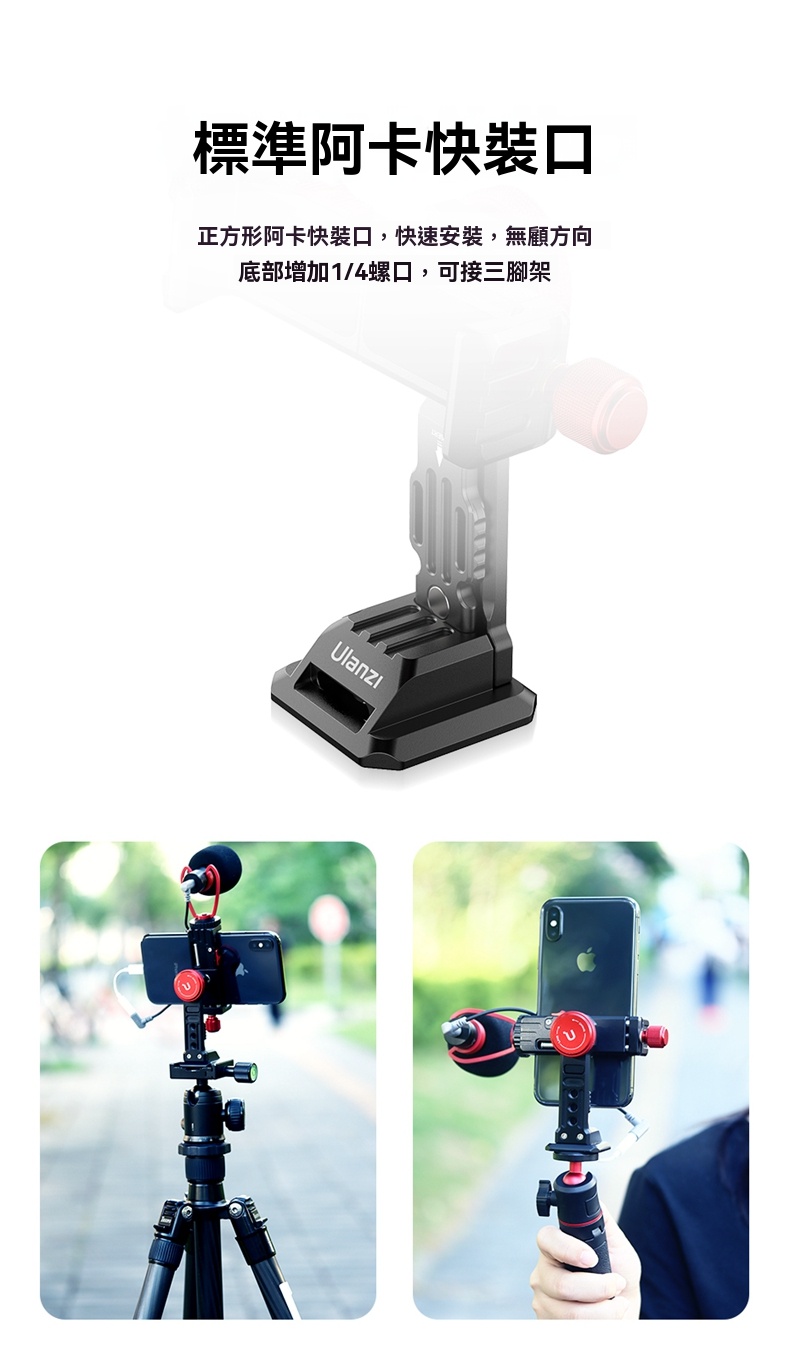 • 標準阿卡快裝口,支持快速安裝並兼容三腳架