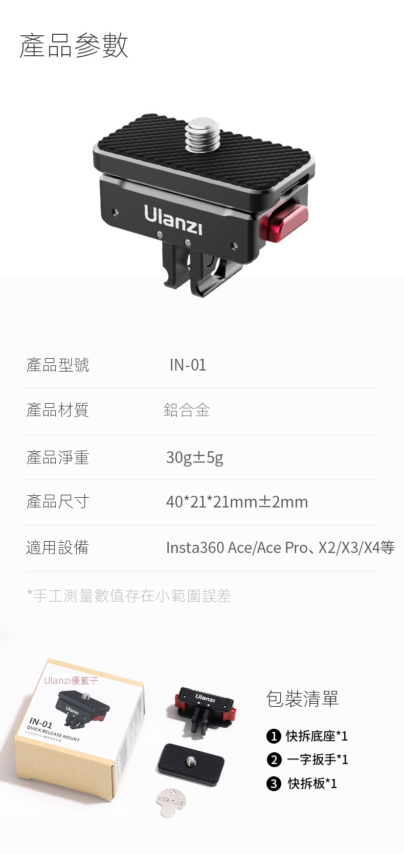 Ulanzi IN-01 Insta360 磁吸快拆套件 | 磁吸穩固爪扣 | 廣汎拓展 | 香港行貨