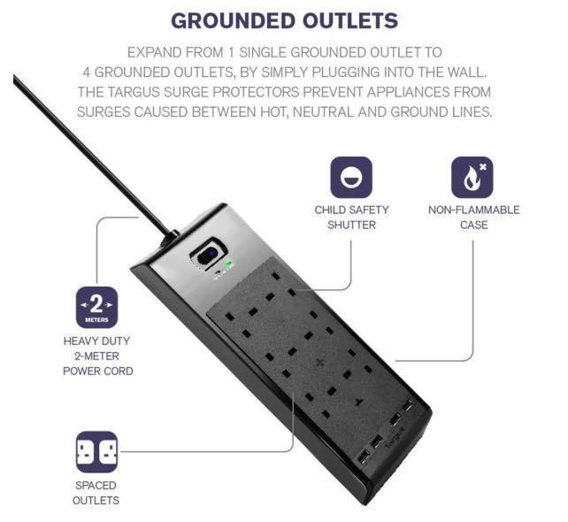 Buy TARGUS APS11 Smart Surge 6 6位插座+4USB 防雷拖板 - 黑色 | USB 智能檢測 | Surge Protection突波保護 | 香港行貨 price in outletexpress .com Hong Kong.In promotion and sale.