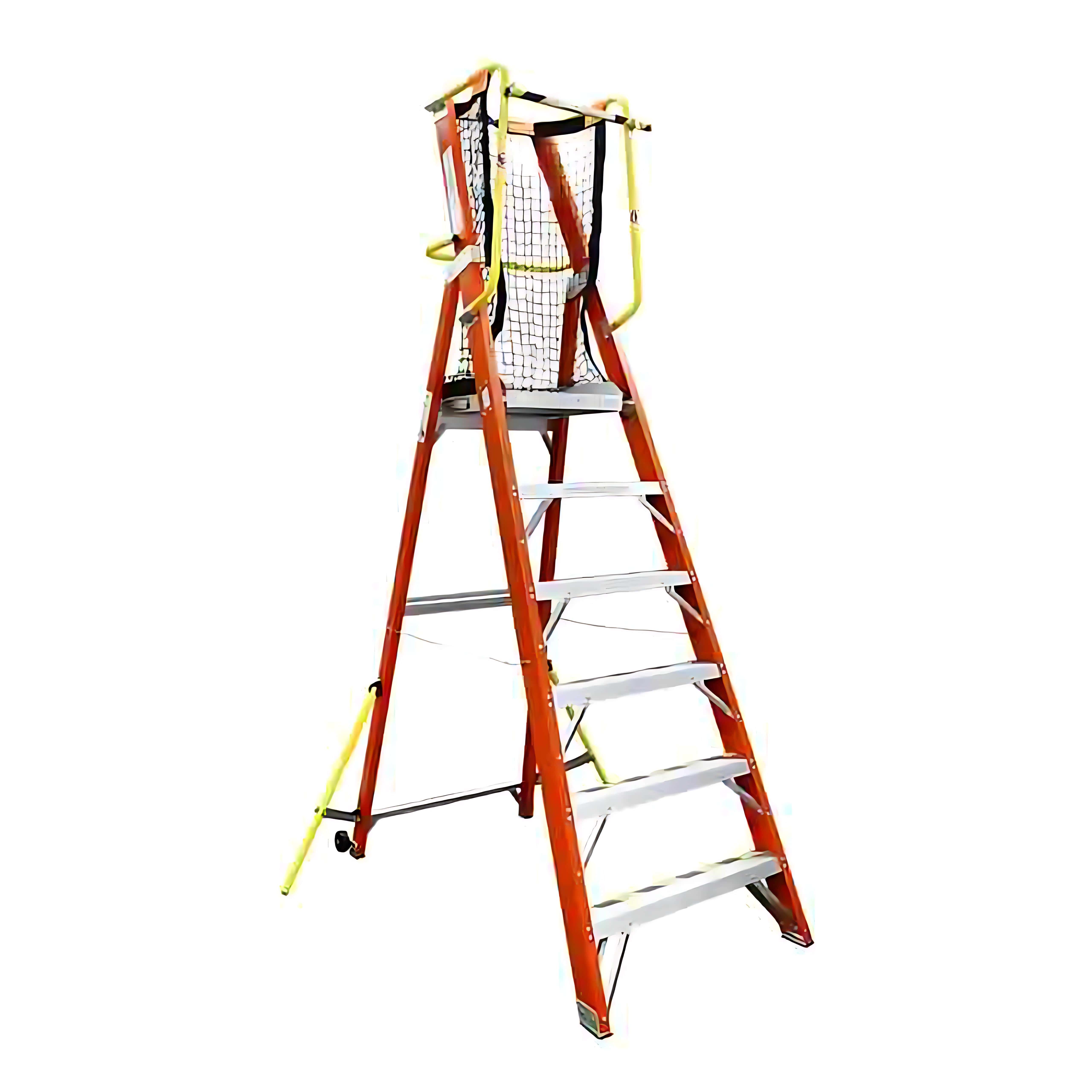 SMAAT SL120 - 106單面纖維梯台嚴格遵循EN131國際標準製造,安全可靠。其選用玻璃纖維材質,具備優異的防潮防黴性能,即使長期處於濕度較高的環境,也能維持穩定,無黴變、膨脹問題。梯台結構穩固,材質輕盈卻承載能力強,且特別設計了扶手,擴大了護欄範圍,為登高作業者帶來更安全、便捷的使用體驗 。