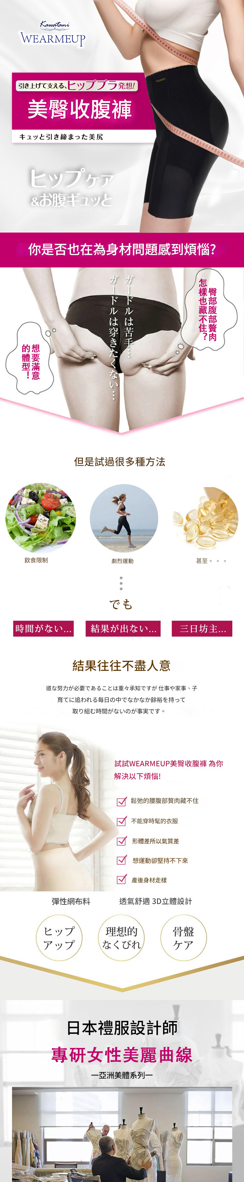 • 3D結構美臀,束縛贅肉但不壓迫,彈性十足。