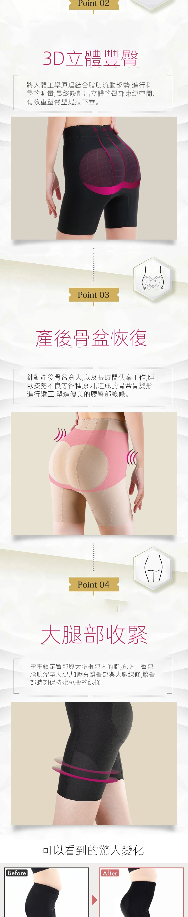 • 矯正產後骨盆變形,塑造優美腰臀部線條。