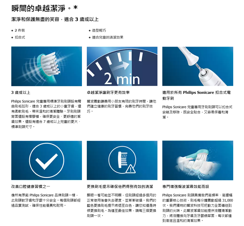 Buy Philips HX6032/63 Sonicare For Kids 兒童牙刷刷頭(2支裝) - 3歲以上 | Philips Sonicare 聲波科技 | 香港行貨 price in outletexpress .com Hong Kong.In promotion and sale.