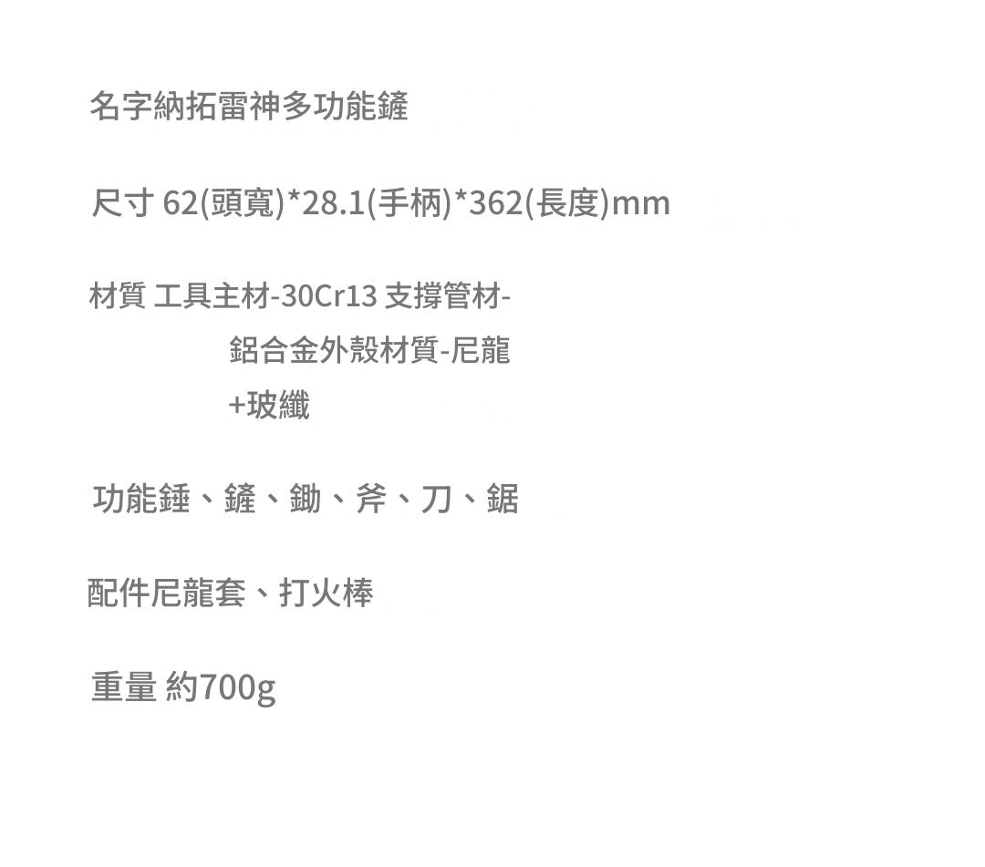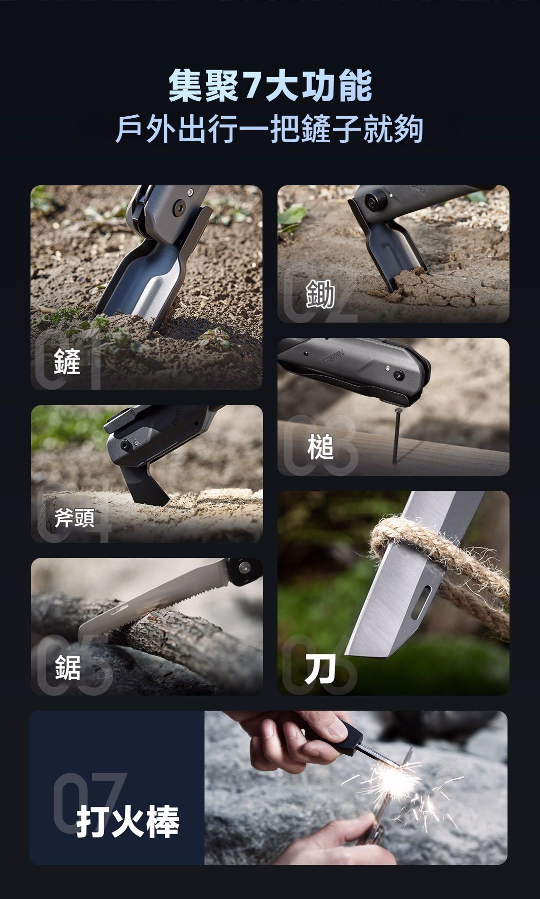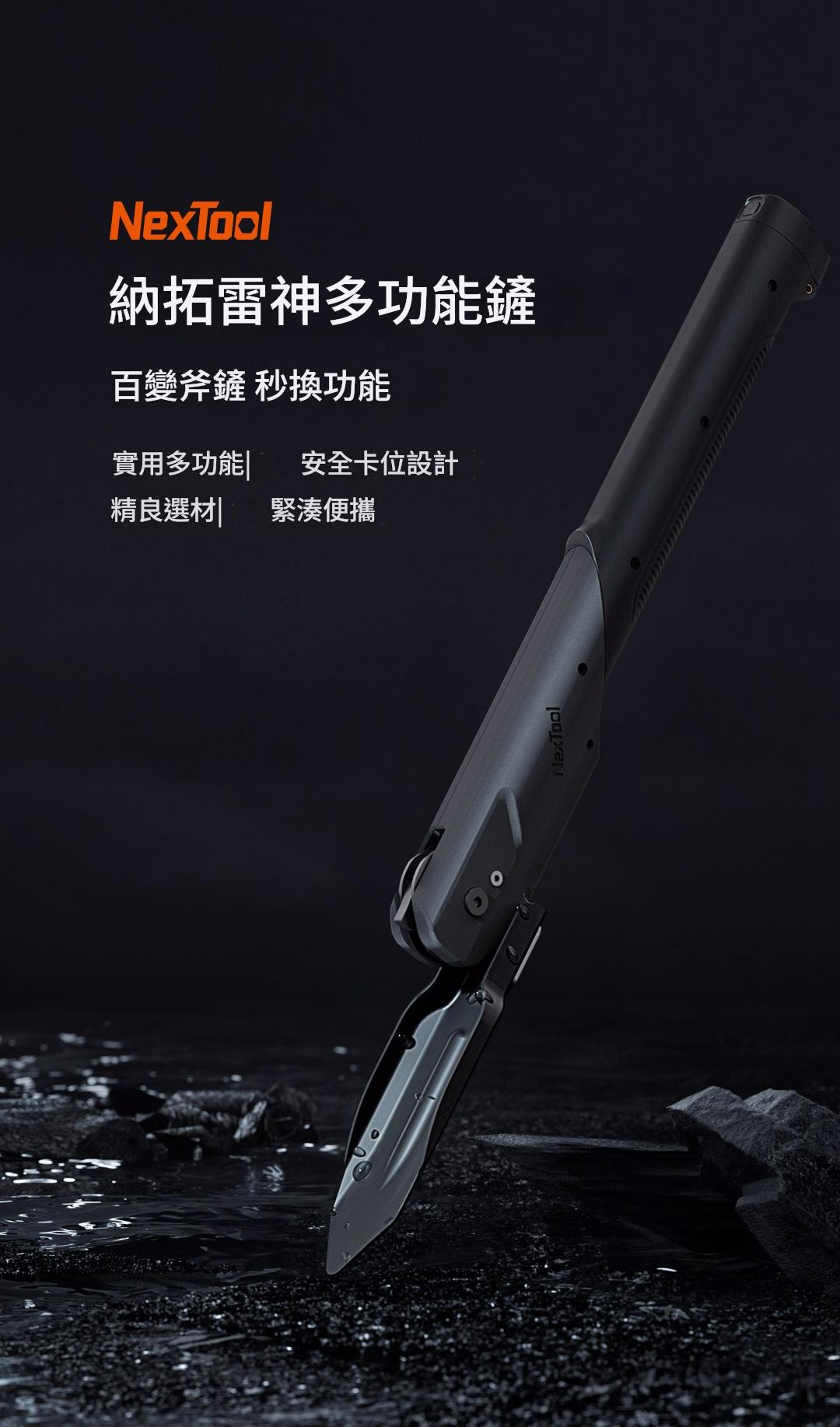 熱愛戶外探險的朋友,可不能錯過Nextool納拓戶外雷神多功能鏟!它集鏟、斧頭、鋤、錘、刀、鋸、打火七種功能於一體,輕鬆應付長途車旅應急、野外露營、戶外釣魚等場景。金屬零件採用30Cr13材質,搭配緻密光滑的黑色防鏽塗層,結實又耐用。內管選用航空鋁材質,手柄是高強度耐磨尼龍材質,握感舒適,整體僅約700g,攜帶毫無負擔。三齒鋸切割效率高,還能透過鎖定機制延長,回收時安全彈片自動鎖住,使用更安全,是你的戶外好幫手!