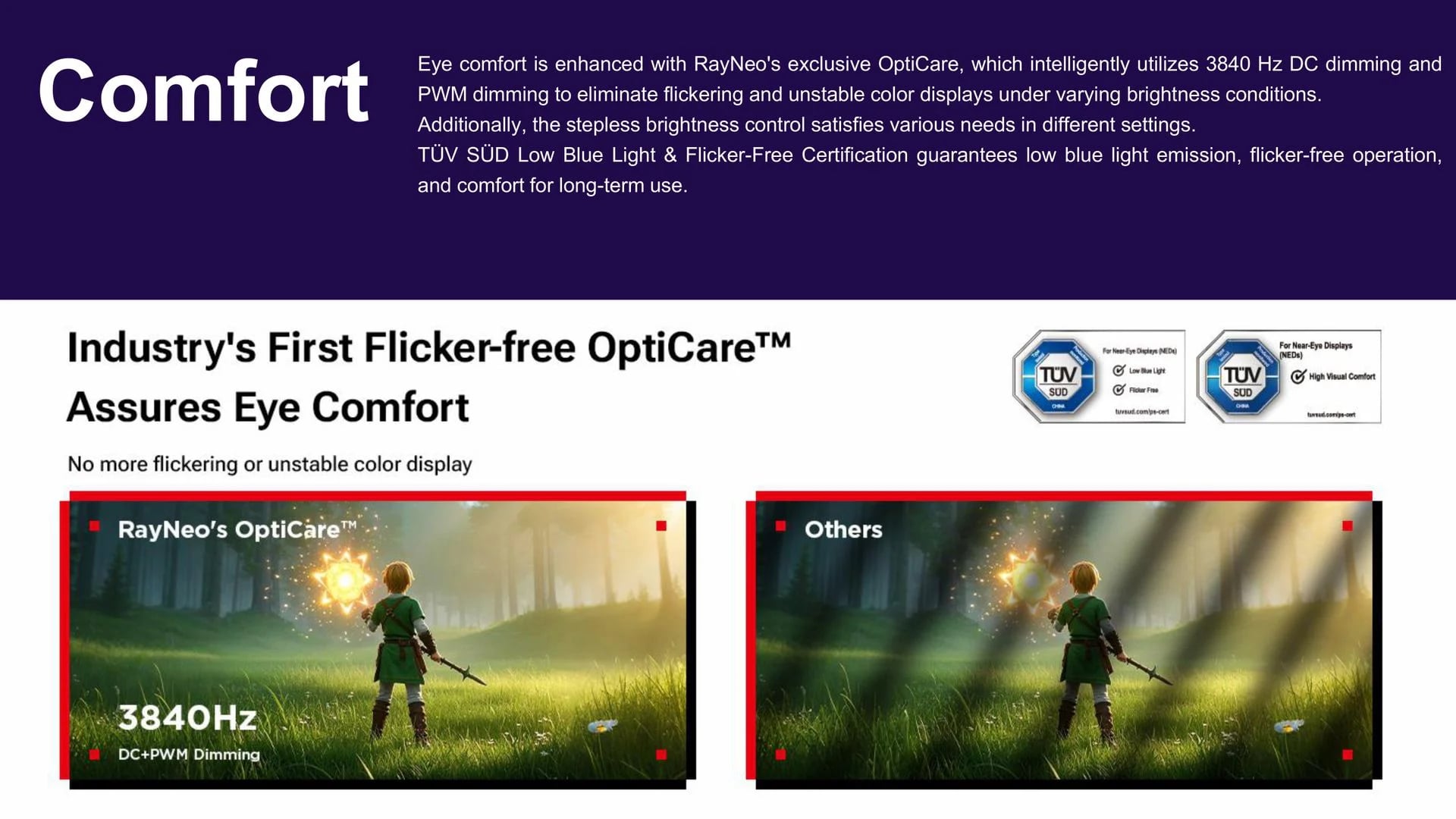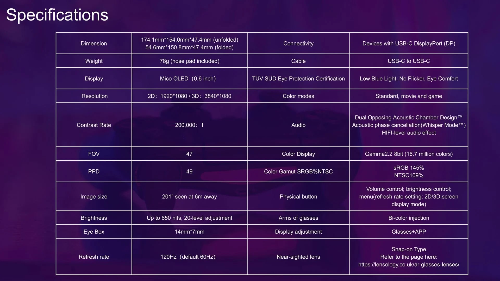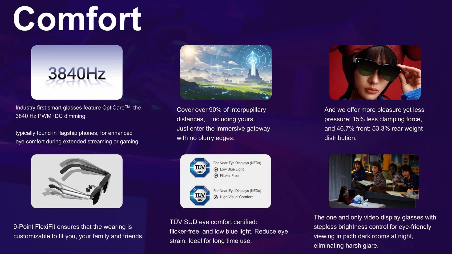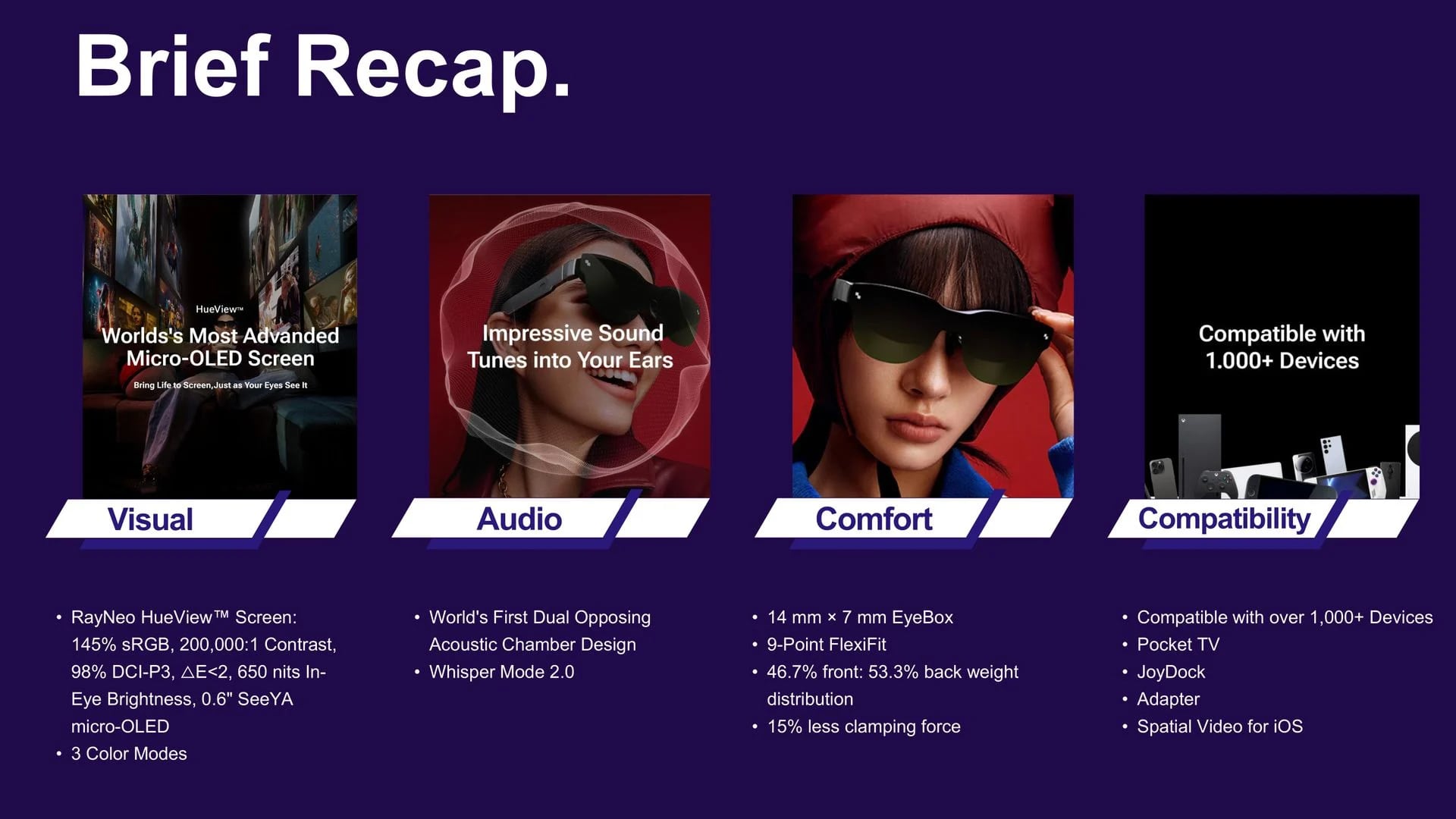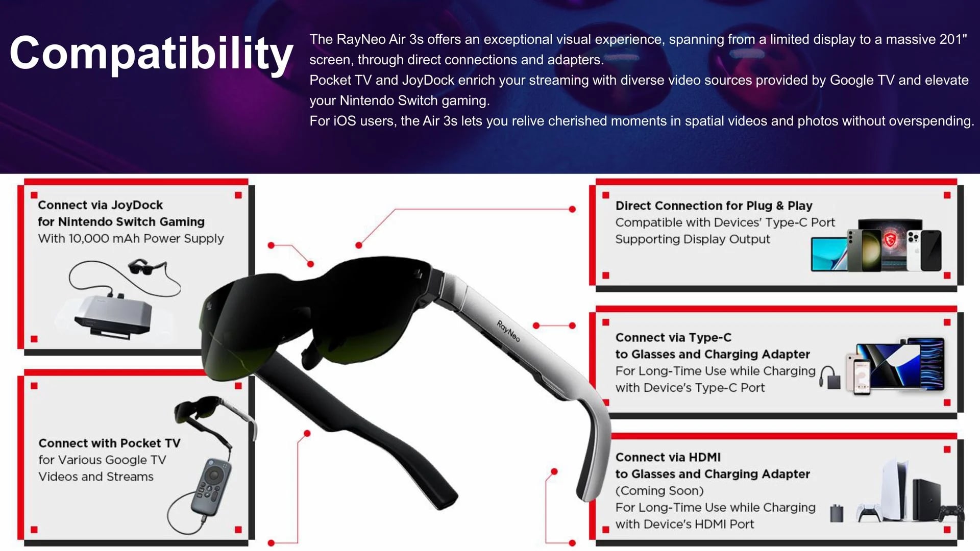 RayNeo Air 3s XR智慧眼鏡是RayNeo創新推出的高性價比產品。它僅重76克,重量分佈優化,搭配FlexiFit系統,適合各種臉型,穿著舒適。其亮度達650尼特,採用HueView最新螢幕技術,串聯微OLED面板,色彩準確率98% DCI - P3,對比度200,000:1,色域145% sRGB,還有201吋虛擬大屏,通過TÜV萊茵護眼認證。音質提升200%,採用雙揚聲器設計。可連接手機、電腦、遊戲機等設備,無論是娛樂觀影、辦公,或是暢玩遊戲,都能帶來沉浸式體驗 。