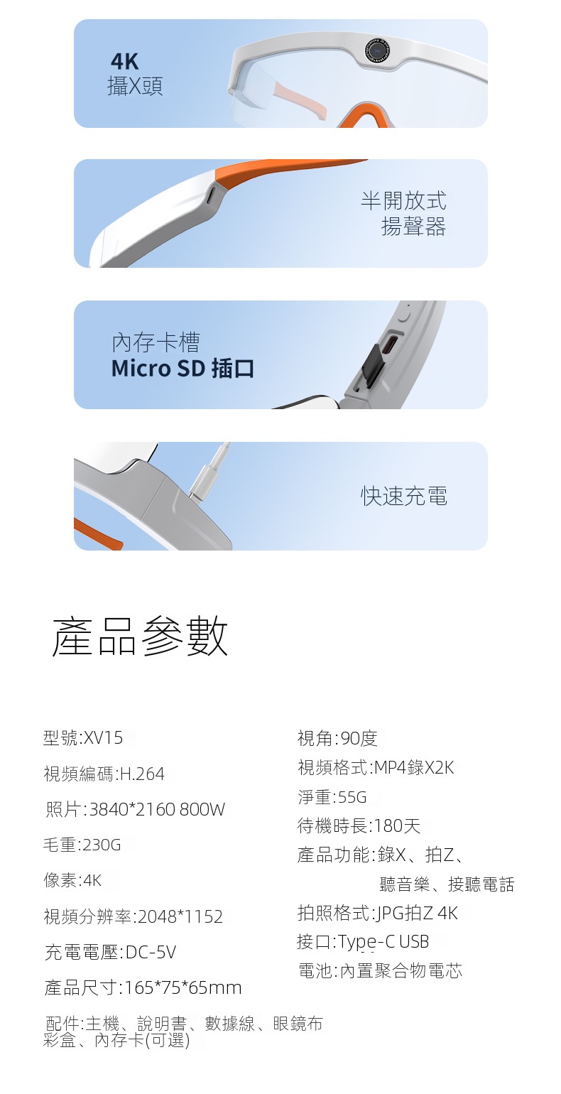 Buy XV15智慧型藍牙眼鏡-黑框 墨鏡 128G | 防藍光鏡片 | 適用於多種場景 | 4K高清攝影機 | 防水等級 price in outletexpress .com Hong Kong.In promotion and sale.