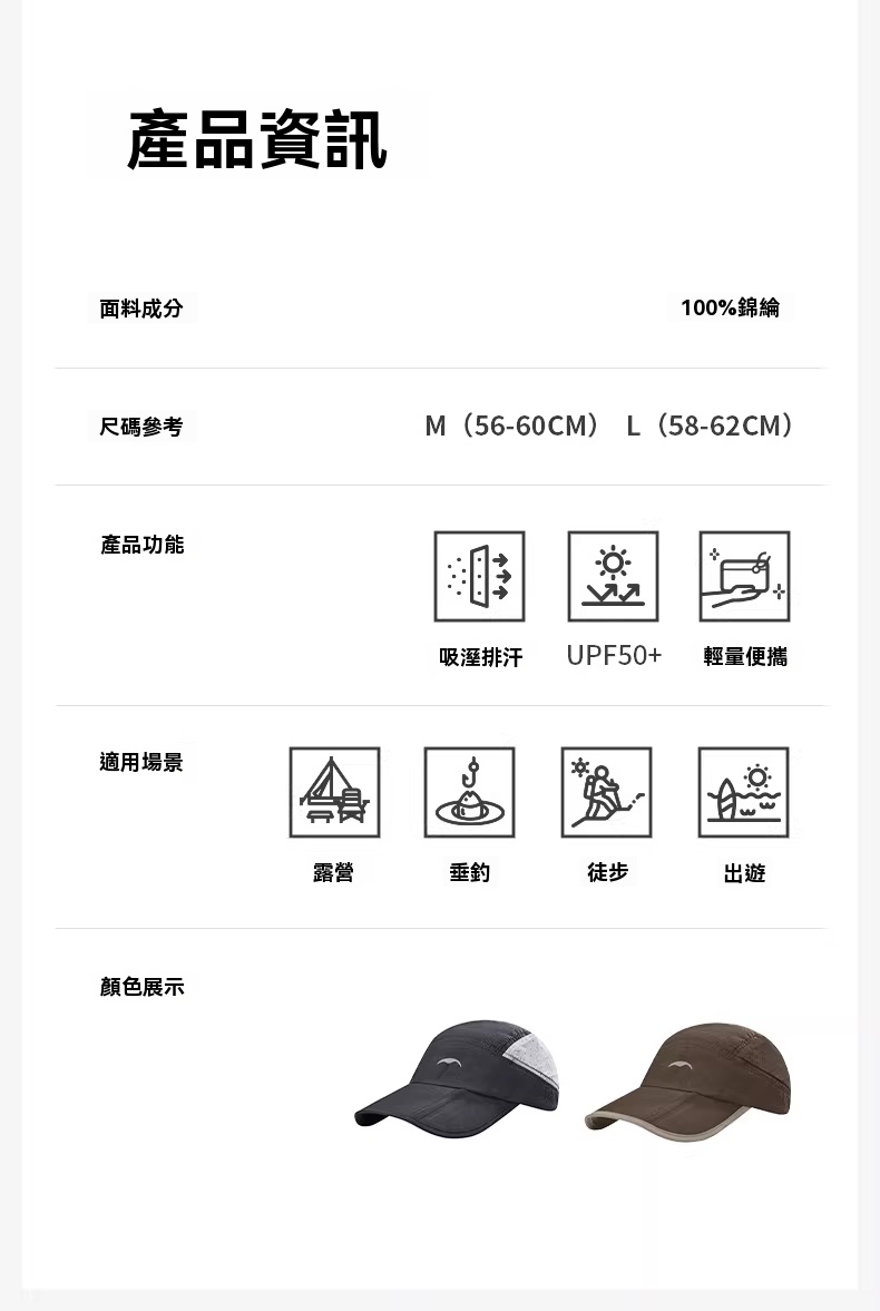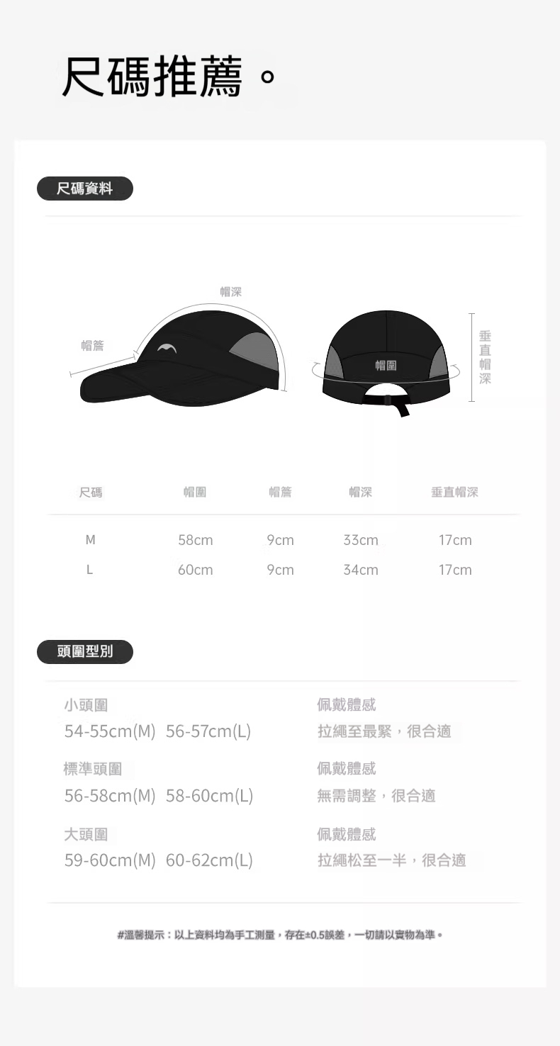 • 尺碼:M(帽圈56-60cm)、L(帽圈58-62cm)