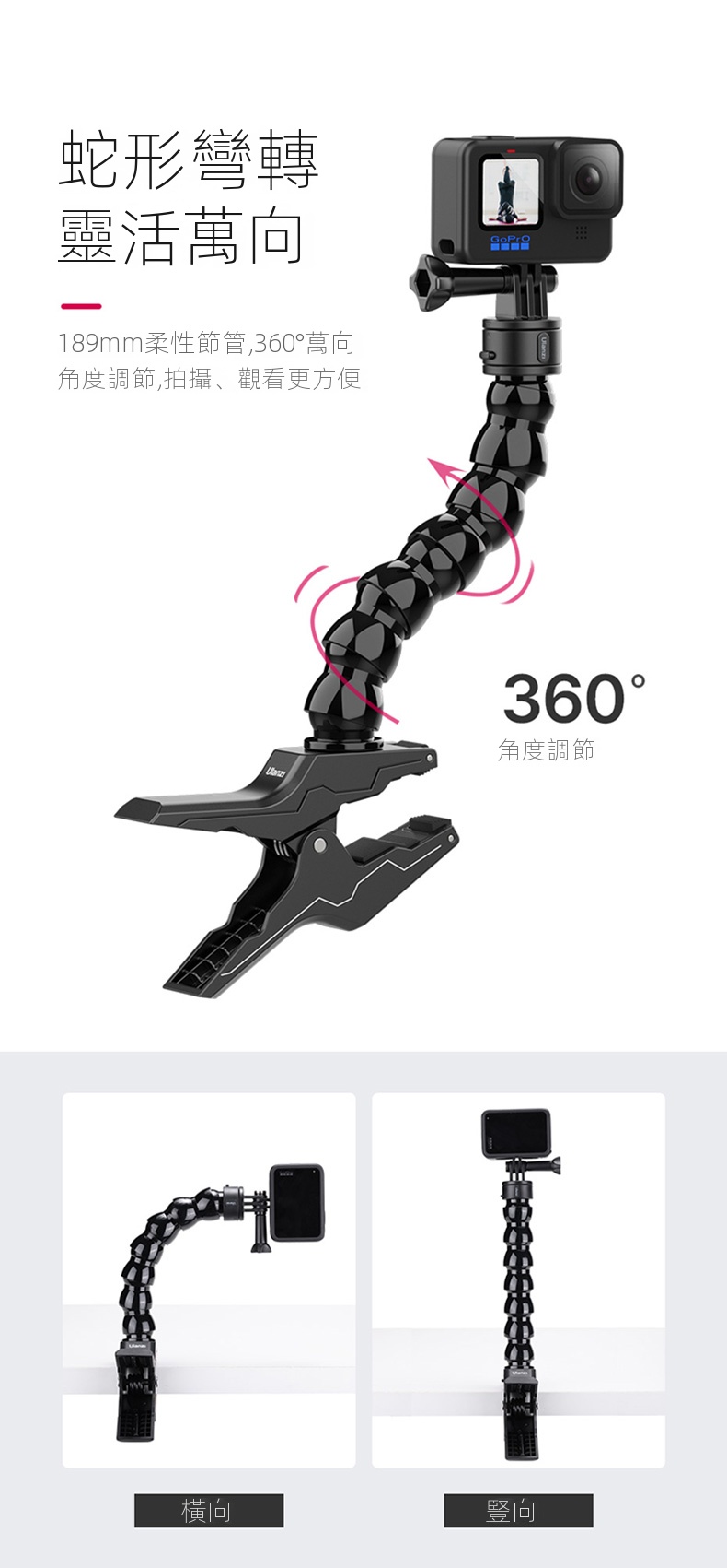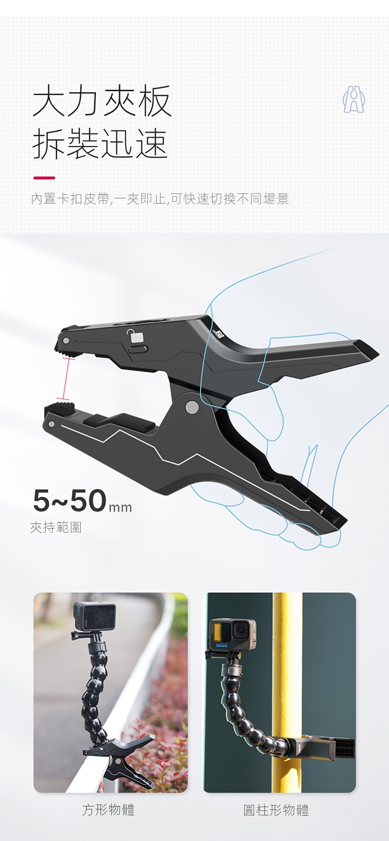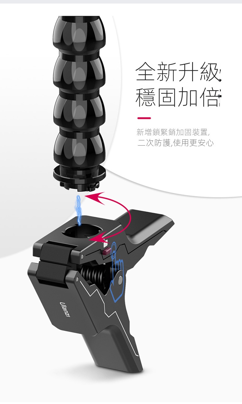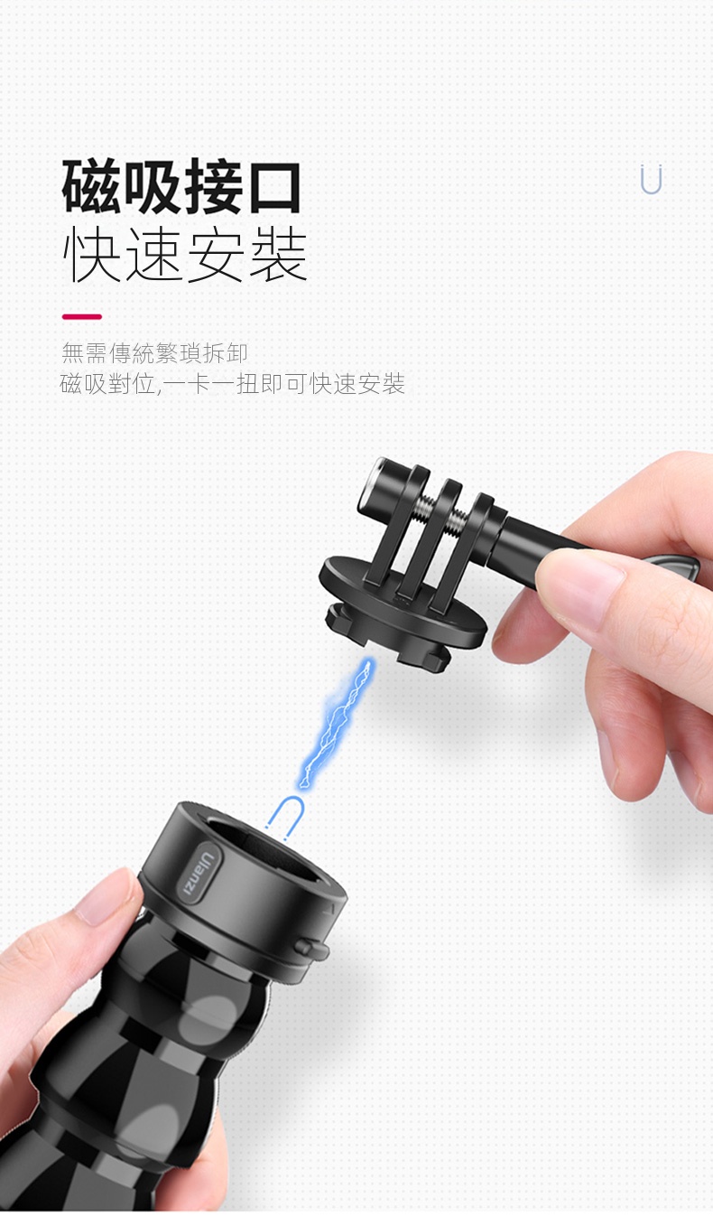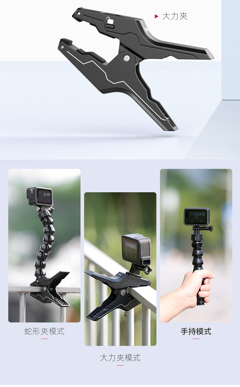 Ulanzi Go-Quick II蛇形管快拆大力夾,是攝影愛好者的實用利器。它採用強力磁吸快拆設計,一卡一扭即可快速安裝,大大節省拍攝準備時間。大力夾的夾持力強勁,可牢固固定在多種物體上,無懼顛簸震動。內建強韌柔性鋁材的蛇形管,可輕鬆拗出各種造型,自由調整拍攝角度。無論是記錄戶外運動,或是用於日常Vlog創作,它都能適配GoPro、大疆等主流運動相機,滿足多樣化拍攝需求,助你捕捉每個精彩瞬間 。