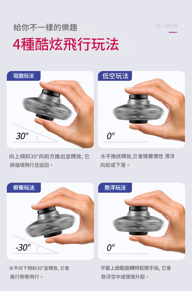 • 4種炫酷飛行玩法:向上傾斜30°推出並釋放、水平推送釋放、俯衝玩法、懸浮玩法