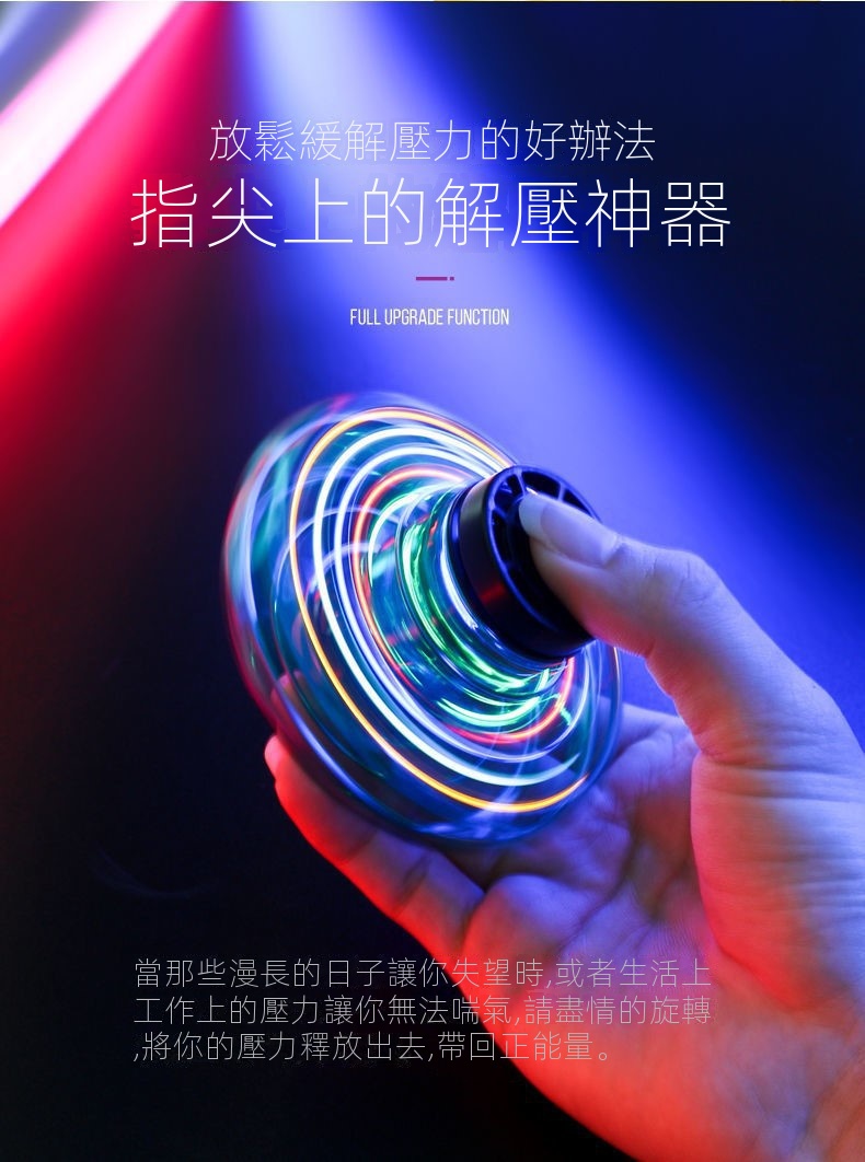 當生活與工作的壓力如影隨形,不妨試試這款指尖陀螺,讓您在旋轉間釋放壓力、找回正能量。其內建七彩炫燈,擁有4種特技玩法:迴旋、俯衝、懸浮及陸地模式,零基礎即可上手,耐摔抗壓設計更添安心。不僅是成人解壓利器,也是親子互動的好選擇,低齡兒童亦能安全使用,有助訓練協調性,為家庭時光增添無窮樂趣。
