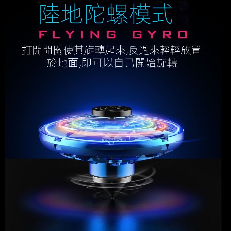 • 陸地陀螺模式:打開開關後放置於地面即可自動旋轉