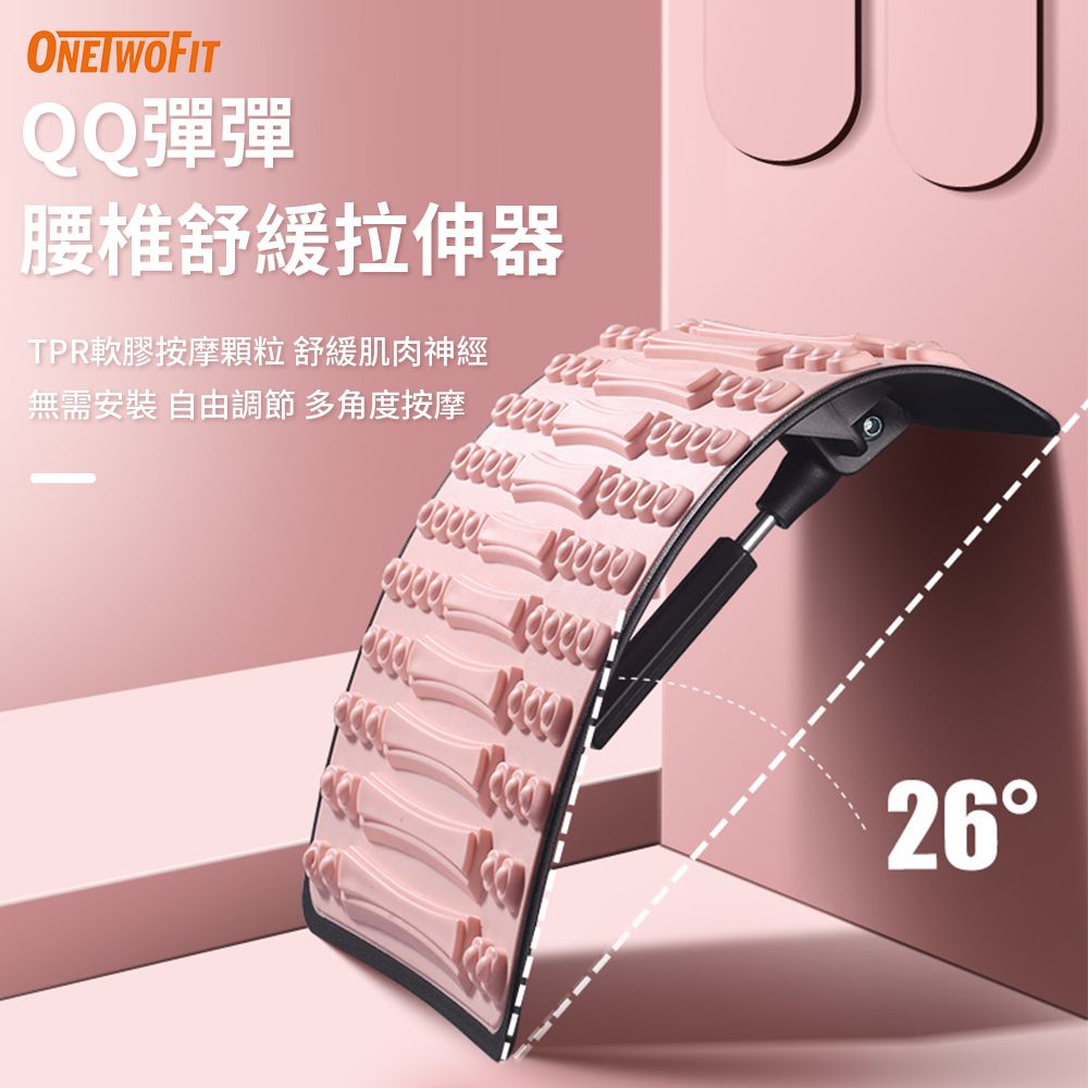ONETWOFIT ET057801 腰椎拉伸舒緩器 - 粉色 | 自由調節角度 | 曲線貼合 | 彈性緩衝 | 香港行貨